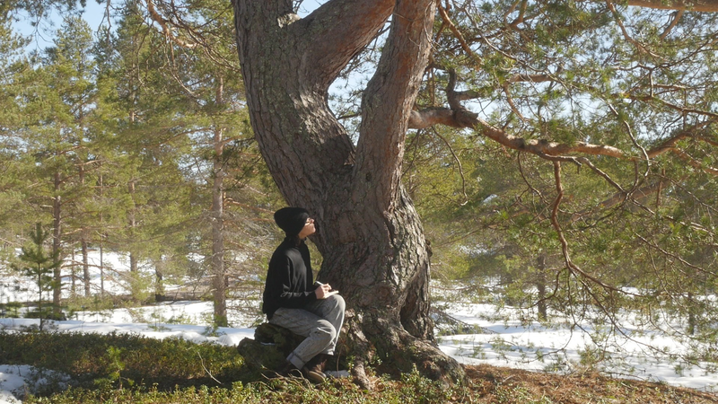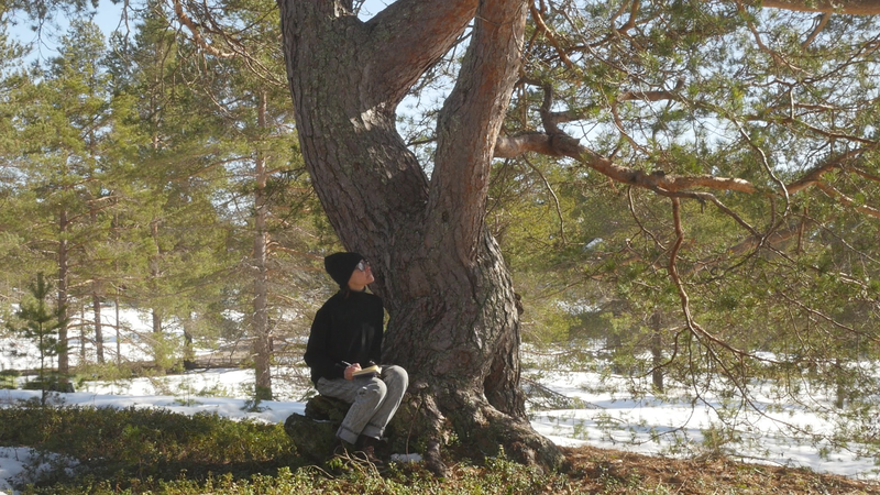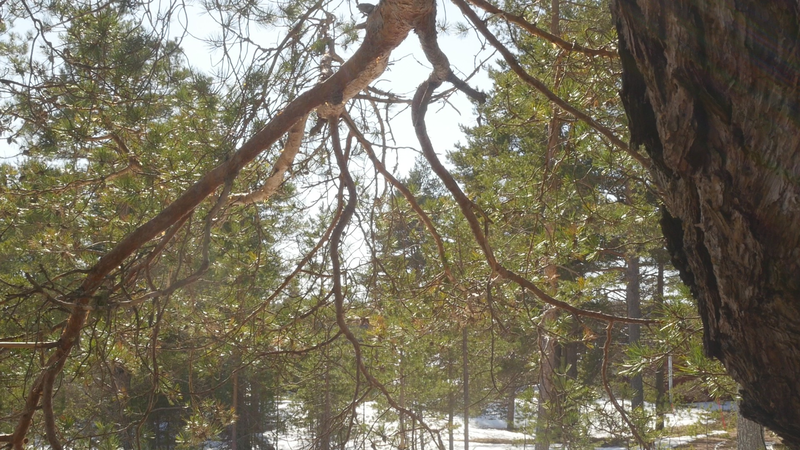 Esteemed Tarri pine or Elder pine, thank you for allowing me to sit here on your root and to disturb you with some questions this sunny April afternoon. And thank you for letting me record this encounter or interview with my video camera. I know it is perhaps a little questionable to think that you have given your consent to the recording, but with the risk of resorting to wishful thinking I prefer to trust my feeling that you are generous with your approval in this case. I have to excuse myself for addressing you in English, which is not my mother tongue, nor your preferred language, but I do hope that by articulating my thoughts in writing and in writing by hand, they will somehow be accessible to you. The irony of writing on paper that is produced of the wood of some of your relatives, or if not relatives, at least other trees, is of course a case in point. I would assume that I am not the first person to come to you for advice; humans tend to turn to old trees when in distress, and to respect pine-elders like you, unlike the younger pines on the tree plantations all over the country. This is my first visit to this island, Hailuoto, up in the northern part of the Gulf of Bothnia, so I am not familiar with your name, Tarri, which is used only here, and means something like an old pine tree or also an old pine tree with a thick trunk and a broad crown. I tried to find an explanation for the word on the internet, but the only thing that came up was the brand of a locally brewed beer named after you, sorry for that. In English you are probably called Scotch pine, Pinus sylvestris, but here that name seems rather funny; you have not come here from Scotland, I suppose, but from the vast northern forests of Siberia. We are actually here on the western edges of the enormous forests that cover the northern part of the whole Eurasian continent. And that brings me to my first question, actually. I wonder what you think of the notion pluriverse, does that make sense to you?