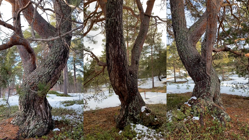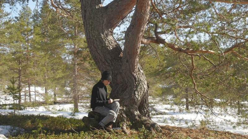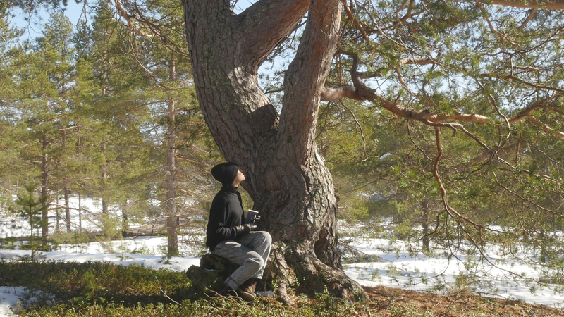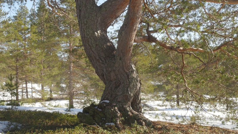 Esteemed Tarri pine or Elder pine, thank you for allowing me to sit here on your root and to disturb you with some questions this sunny April afternoon. And thank you for letting me record this encounter or interview with my video camera. I know it is perhaps a little questionable to think that you have given your consent to the recording, but with the risk of resorting to wishful thinking I prefer to trust my feeling that you are generous with your approval in this case. I have to excuse myself for addressing you in English, which is not my mother tongue, nor your preferred language, but I do hope that by articulating my thoughts in writing and in writing by hand, they will somehow be accessible to you. The irony of writing on paper that is produced of the wood of some of your relatives, or if not relatives, at least other trees, is of course a case in point. I would assume that I am not the first person to come to you for advice; humans tend to turn to old trees when in distress, and to respect pine-elders like you, unlike the younger pines on the tree plantations all over the country. This is my first visit to this island, Hailuoto, up in the northern part of the Gulf of Bothnia, so I am not familiar with your name, Tarri, which is used only here, and means something like an old pine tree or also an old pine tree with a thick trunk and a broad crown. I tried to find an explanation for the word on the internet, but the only thing that came up was the brand of a locally brewed beer named after you, sorry for that. In English you are probably called Scotch pine, Pinus sylvestris, but here that name seems rather funny; you have not come here from Scotland, I suppose, but from the vast northern forests of Siberia. We are actually here on the western edges of the enormous forests that cover the northern part of the whole Eurasian continent. And that brings me to my first question, actually. I wonder what you think of the notion pluriverse, does that make sense to you?