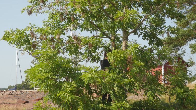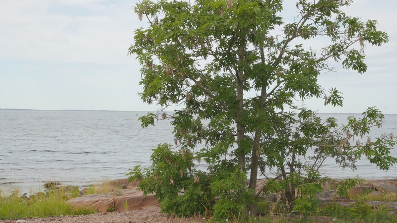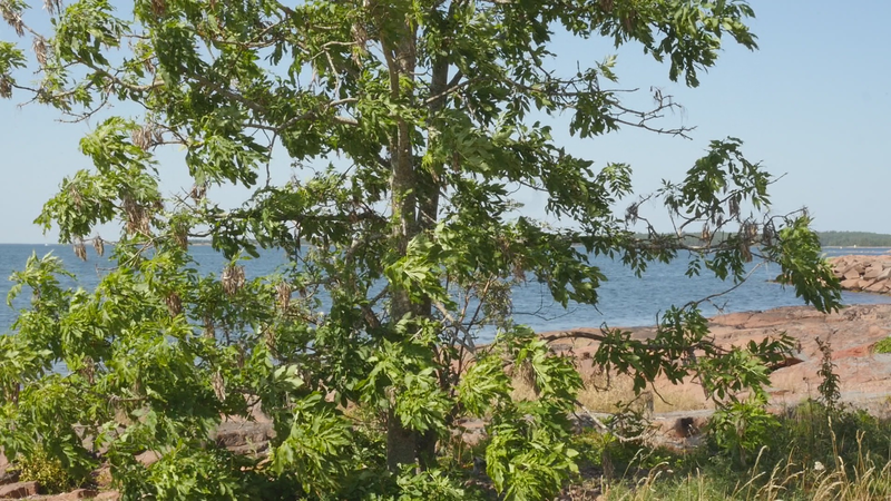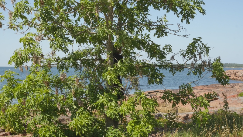 The sun is warming, the wind has abated, it is nine am. The sea is blue behind me, the sky is blue with white stripes of clouds. The first tourist cars are parking on the post quay. The waves are lapping like before, while the flag shows me that the wind is no longer blowing. – I read on the internet about ash trees and found out to my surprise that you are endangered in Sweden and in many parts of Europe. The reason is some kind of fungal disease that kills ashes. Fortunately, it has not affected you nor the other ashes in the area. On the contrary, you all seem very safe and sound and green. I also read that you are actually of the same family as lilacs, which seems slightly absurd. I cannot think of one trait in common, whether in appearance or mode of growth. Although family relations can be strange at times. Ashes are not very common in the Helsinki area and higher up near Hämeenlinna they hardly exist at all. In my childhood experiences ashes belong to Lubondas, in the archipelago between Porvoo and Loviisa, and later in other places on the coast. I once brought with me two ash plants from Kökar and planted them in Koivumäki, near Hämeenlinna. One of them survived and is now a tall tree, not as tall as you, but almost. Funny to call you a tall tree, because compared to ashes in general you are rather small, and probably fairly young as well. Although, let’s not talk about age …