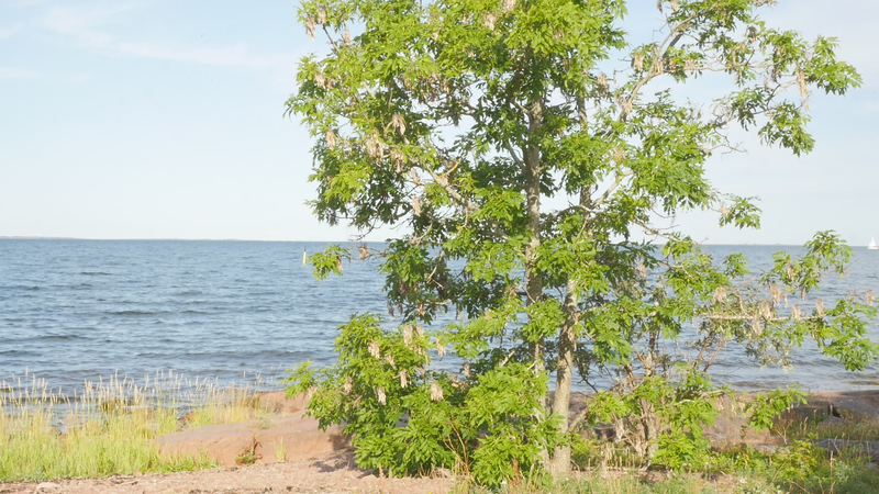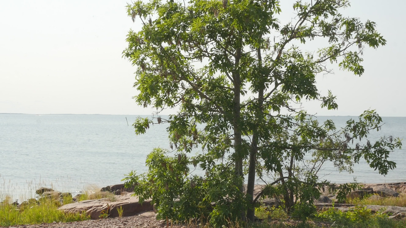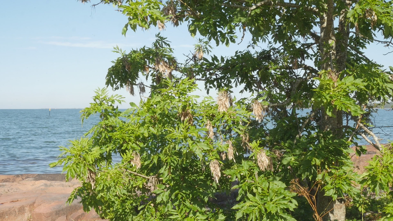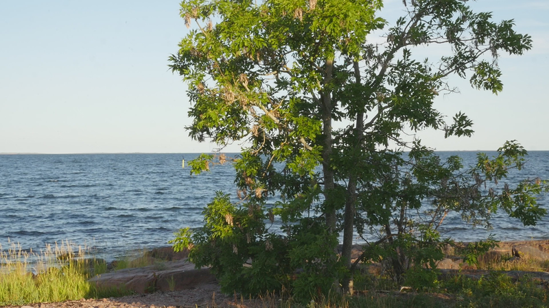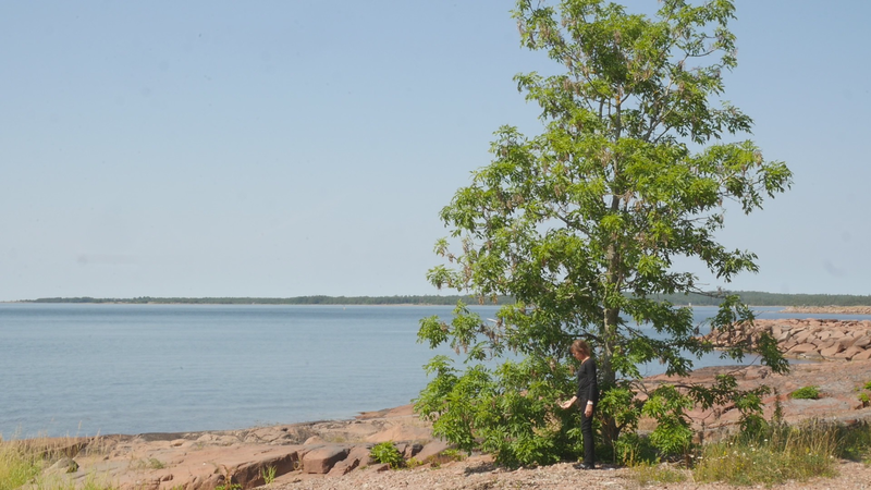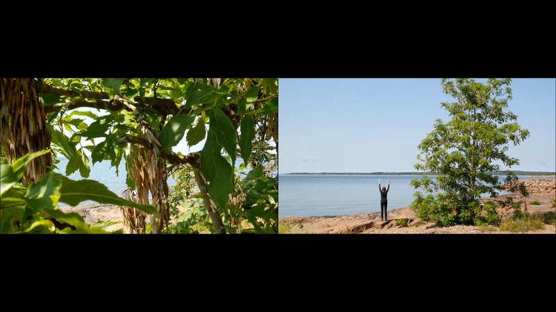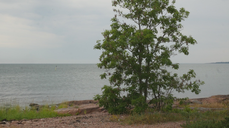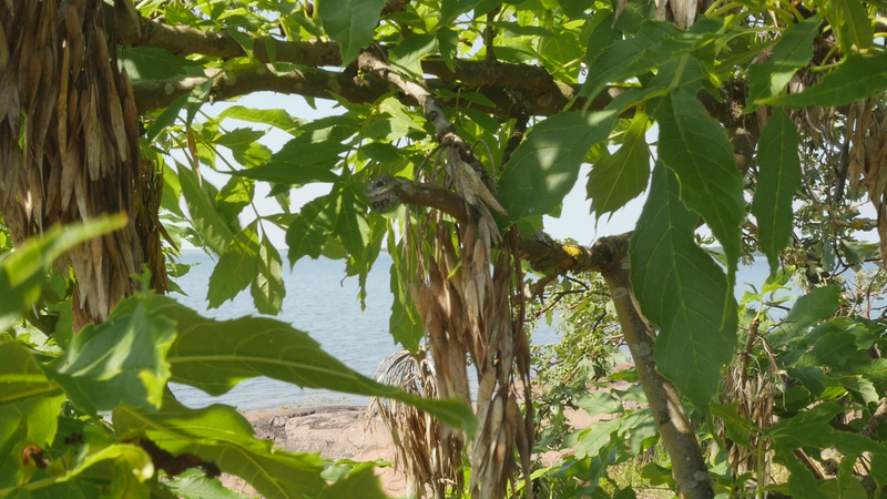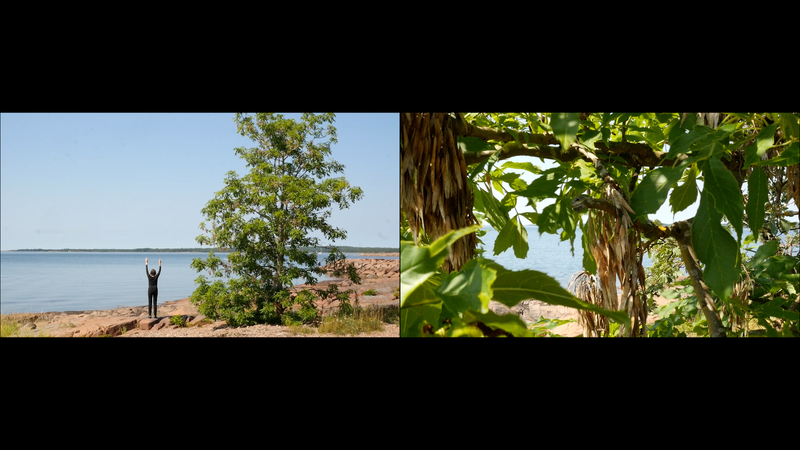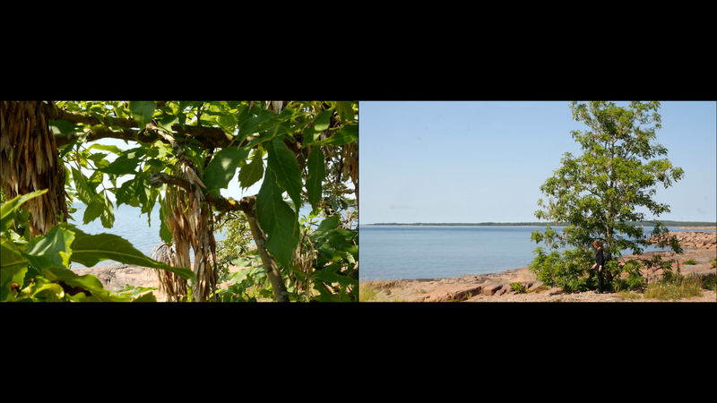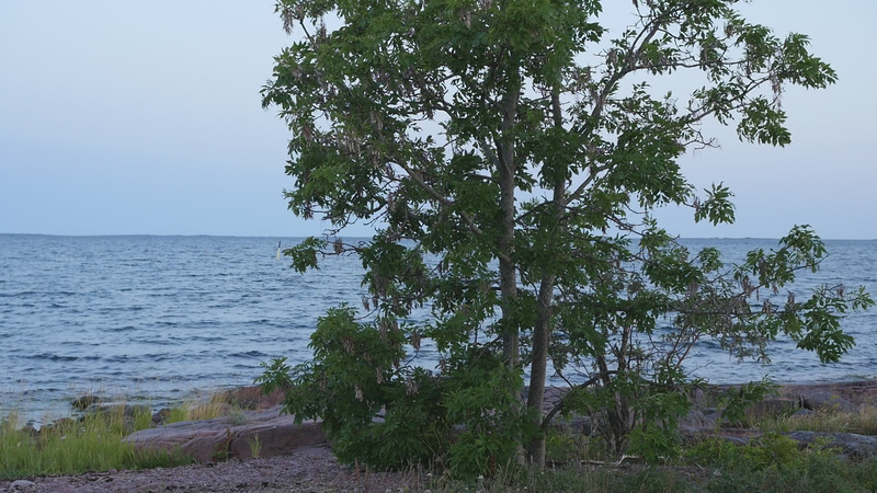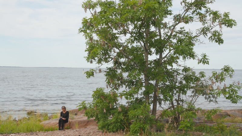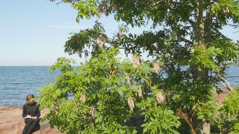 The wind has abated, the sun still shines brightly but does not warm at all any longer, it is evening. It is nine pm, everything calms down. There are people around, of course, but they speak softly, aware of the approaching evening. This is my next to last visit to you, at least for today, this day with the ash tree or whatever it should be called. And it is perhaps about time to tell you a little what I am actually doing. Yes, I am writing in a notebook, a diary of sorts, despite sometimes speaking directly to you as well. And not only that, I record this writing and sitting on the rock next to you on video, and you are the “main character” in the image. Therefore, I cannot avoid the issue of art as representation. I represent an image of you, even though video turns it into a display which is an appearance and an action, a performance, a process. As an image, however, this will be one more image in the long chain of images of individual trees in the history of art, where the tree has stood for life or nature or spirituality, growth, all kinds of good things, and sometimes time as well. Contemporary artists have defied or criticized this legacy by turning trees upside down or by dragging dead trees into galleries and museums or by other similar strategies, described for example by Giovanni Aloi in his book Why Look at Plants?. My making an image of an ash tree on the shore and sitting down next to it could be interpreted as an uncritical repetition of the romantic tradition without any kind of conceptual idea or point. And I find it quite difficult to defend myself against that accusation. I do nevertheless hope to be able to turn the gaze of humans to you, to look at you in a new way, not as a romantic symbol for life or time or the cycles of nature or something else, but as an exciting, fascinating, living being, which we tend to overlook and even now only get to see a small part of in the image. Partly your crown does not fit in fully in the horizontal image, and above all, most of you is hidden below ground, invisible for the camera. Right now, you are actually standing in backlight, as a silhouette with the sun shining low behind you, and therefore not much of you can really be seen. Basically this is the principle - I try to lure the viewer to look at you, not at the visual conventions of Western art nor the colonialist fraudulence of landscape art or something else… Whether it works, well, that I cannot know yet…