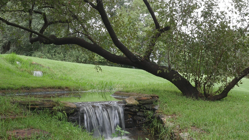 or Rhus, or Firethorn Rhus or Common Wild Currant, or however you prefer to be called. I am pleased to meet you here in Nirox Sculpture Park, and sincerely hope that you don’t mind my sitting on you, here by the brook. You look fresh and strong after the storm last night and your trunk or branch is wet and heavy with water. I guess you have always plenty of water, living next to the brook, but nothing beats a good shower! Now the sun is hiding between the clouds again, and there are sudden gusts of wind, which feel almost like there could be another rain (shower) coming. - I feel funny beginning with the weather, as if you were a British shrub. But, how else could I approach you now, when I already have entered your int8mate sphere, like a brutal intruder. I do hope you are accustomed to humans who feel invited by your low-bending trunk to take a rest here. After all, you are growing right on the path to the small bridge across the real river. But, the tiny waterfall next to you is decorative, isn’t it? Probably you like the sound as well. Scientists have discovered that some plants can direct their roots to grow towards water based on the sound only, even when no humidity is present as an indicator of water. Here, in your home there sure is water everywhere - in these brooks with their murmuring sound, and in the vast ponds that function as mirrors for the trees and the artworks and the sky. How does it feel to live in such luxurious circumstances? To be sat on and passed by hundreds of visitors, mainly on weekends when the park is open for the public, is not a hard price to pay for this abundance, I suppose. But, if indeed you are a Firethorn Rhus you are either male or female, male, I suppose, because I cannot see any berries, so, it must be a little lonely here on the lawn. Or, then I am being a stupid human again; you communicate via the bees, of course. Right now it is the end of season, end of summer, so I can see no flowers, no bees and no frantic activity around you - merely some moths that make some of your leaves look rather sick (hopefully they were reduced by the rain last night). This time of year, I would expect some berries, however, but if you are a male, then that is not your problem. - Sitting here, trying to write, I become aware of the dampness of your bark; the water slowly seeps into clothes. Luckily it is rather warm, still. - I wonder what I should tell you, what would be interesting from your perspective, besides the weather? The current pandemic-panic that spreads around the globe doesn’t concern you. And here the polyphagous spot hole borers (or whatever they are called) that plague the old trees on the streets in Johannesburg and are spreading a fungus that kills the old and beautiful plane trees has probably not reached here yet. And perhaps it would not concern you, anyway. We all have our own diseases, parasites and pests, I suppose. But something is bothering you, that is clear, because most of your leaves have dark brown spots and some leaves look clearly ’eaten’, with only the ’veins’ or the net of fibrous structure remaining, and all the chlorophyll-rich material eaten away. They say that most plants can survive to be eaten up to 70% and can happily grow new leaves instead of the ones consumed by animals, but that will be next year, I guess. I suppose you let your leaves fall and grow new ones in the spring, but I do not know for sure. Most evergreens have either needles or then glossy, hard leaves. Well no, I am forgetting the tropics. The various plant species and their mode of living are so numerous or innumerable, that it is simply hilarious to even imagine understanding anything about all their diverse strategies. Thank you for your patience with me, and many thanks for letting me sit here. All the best for the future, too. I hope you will get well soon!