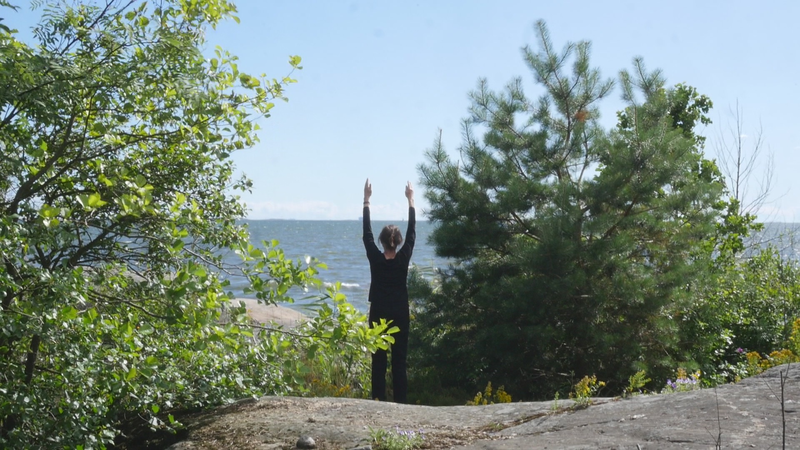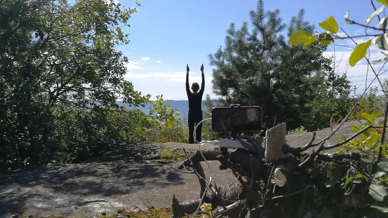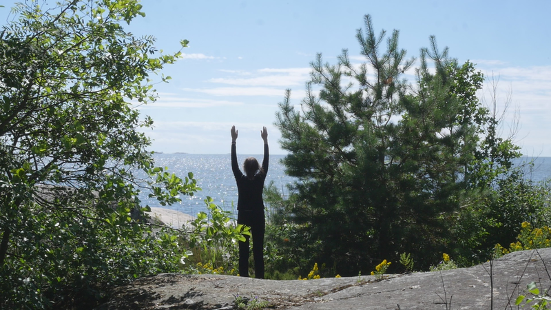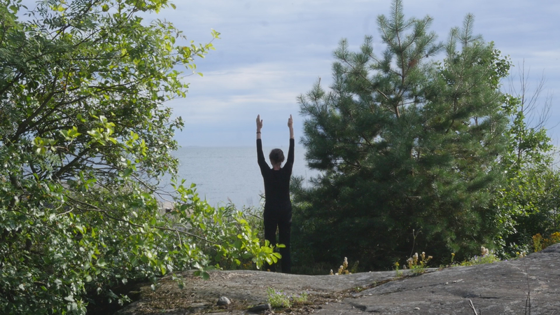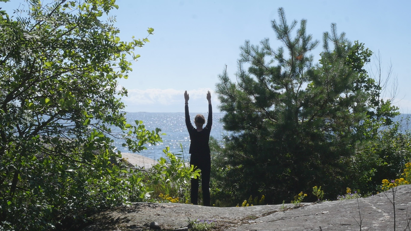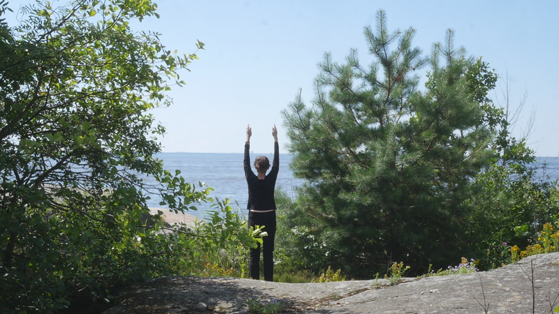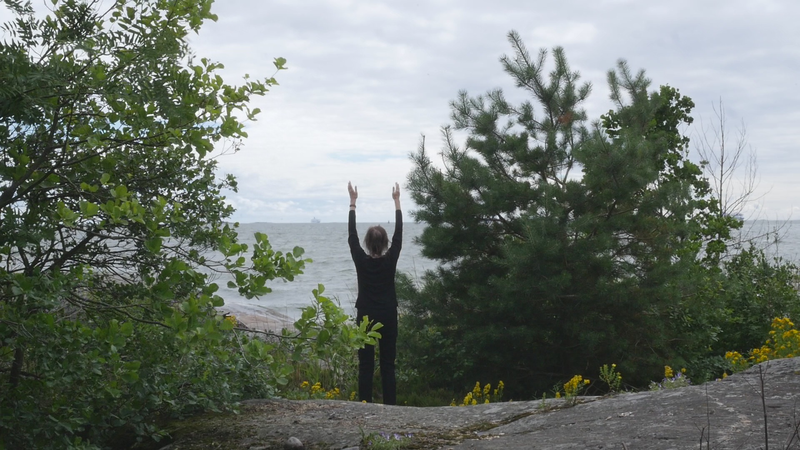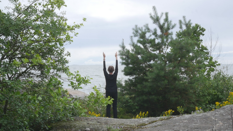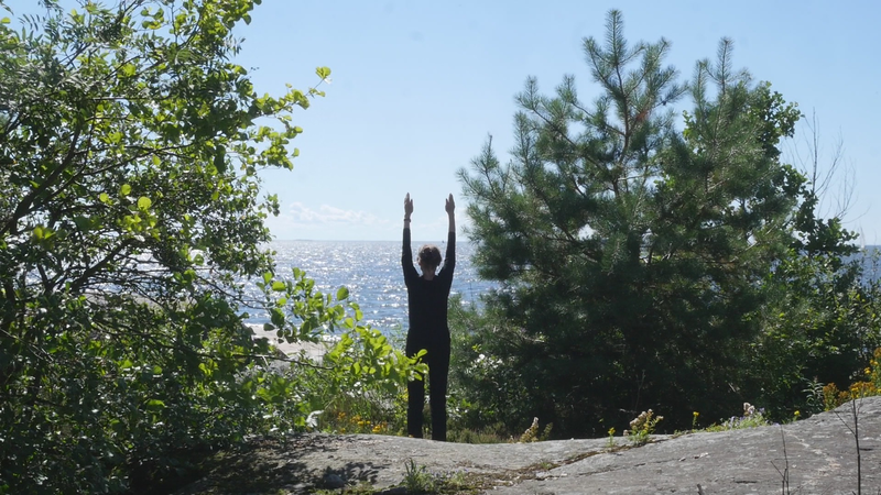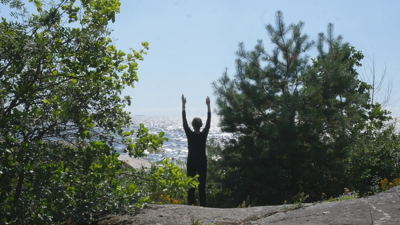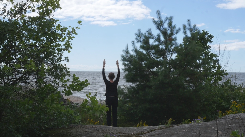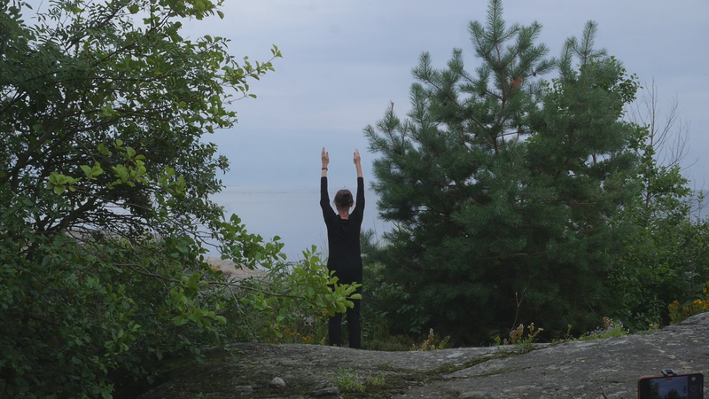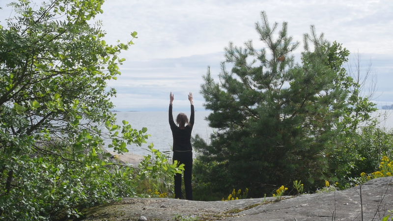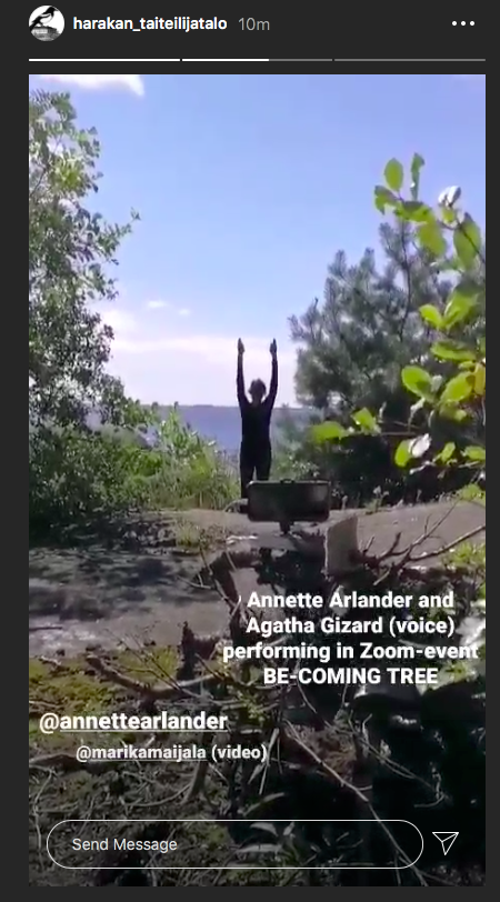 On 1 August I participated in an online performance event called Be-coming Tree, for one hour together with the pine. I did not try to keep my balance or my arms stretched for one hour, but performed for ten breaths and stood for ten breaths, alternating between the two. Unfortunately the zoom stream was not recorded, but luckily Marika Maijala recorded a snippet on site, and posted it on insta-live as well. She also took some photos.