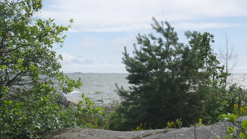 Hetki kun tuuli kääntyy, on melkein tyyntä, pelkkä odotus. Pilvet kerääntyvät, tummenevat, mutta mihin suuntaan ne lähtevät? Kallioilla ei ole ketään, ei edes lokin poikasia. Kuuluu vain loiva laineiden loiskunta. Ja pörrömänty seisoo rannalla hievahtamatta, en ole vielä kertaakaan nähnyt sen neulasia niin liikkumattomina. Palatessa tuulenvire alkaa, pohjoisesta. Tuoko tuuli nyt viileämpää, vaikka hellettä luvattiin?