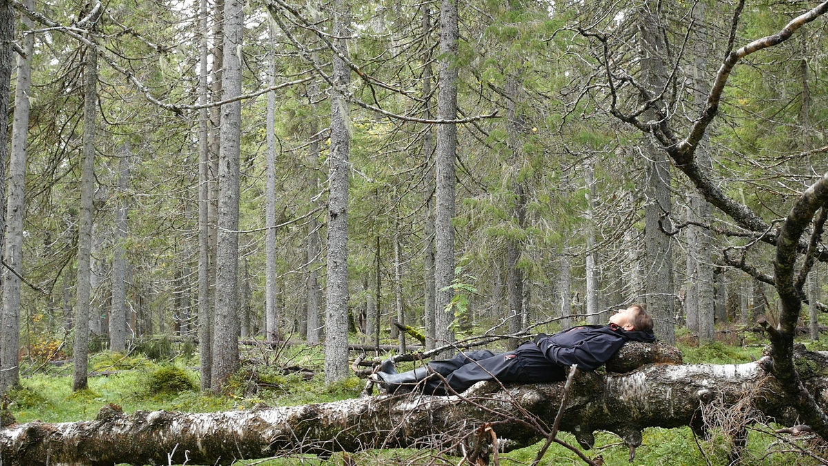 Dear Spruce, dear deceased or departed, or whatever is the proper term for a respected and beloved dead being – because there is no doubt that you are dead, dead as a spruce, that is. Your body, broken and now separated from the roots, lies on the ground dry and dead like a skeleton, except that you are steaming with life of all forms – insects, fungi, larvae, lichen, microbes, and all the things that I cannot see. And who knows what mice or other furry creatures have nests further up in your former crown? You are clearly serving your community also while dead. I am not sure how you decide whether a tree is dead or not, because some trees are able to grow new roots from their trunk, or at least new branches to form new trunks growing from a trunk fallen on the ground. Perhaps that is not possible for spruces, though. I have never seen one on any of the spruce cadavers, and there are plenty of them in this forest. On the other hand, your roots seem intact, everything below ground, although invisible to me, could be alive, and simply waiting for the right moment to throw some green needles up in the air. Well, deciduous trees are doing that, creating a whole selection of new stems and young trees from the cropped stump, but again probably not the spruces, I’m afraid. And it looks like your wood has been quite thoroughly eaten by insects, perhaps before you even fell to the ground – that could have been one of the reasons that you fell in the first place. Usually the spruces around here seem to fall with their roots open, like losing their grip of the ground in a storm. But you are really broken midway, at the waist, well, at knee height, or wrists would probably be closer, if we use human measurements. – I was attracted to you at first by the huge mushrooms that grow like small parasols from your stump, and then by the intricate forms of your almost bare branches that spread out from the trunk on the ground. Sitting on a corpse, on a cadaver, is morbid of course; and thinking of you as a rotting heap of life, all kinds of creatures busily trying to decompose you to minerals and nutrients, like a giant compost, does not make sitting here more pleasant. In actual fact your trunk seems rather steady and comfortable to sit on, not that different from a wooden bench, despite your rounded form and the slightly irregular, itchy bark. There is a small ant nest (small compared to the giant ones all around here) right at my feet – hopefully they are not disturbed by me, planning a defence attack. The sun is still warm, and it is very quiet, no wind. I wonder how man winters you have already been lying here, not that many, I suppose, but that is hard to know. There is no moss growing on top of you, but that might be simply because your branches keep you raised from the ground. And how many years will it take for you to decompose completely and turn into soil? In some places here you can still see the contours of a tree trunk in the moss, although most of the wood is gone and the moss cover is continuous. You are fertilizing the soil, I guess, whereas a human body decomposing on the ground would excrete poisonous substances, at least that is what I have heard. There is something fascinating in wood being such a living material, although it is clearly part of a dead tree, or a formerly living tree. I imagined I would sit here and think about death and dying, and the value of being able to witness the processes of decay instead of being protected from all such “unpleasant details” by an overly hygienic and artificially maintained almost sterile environment. But instead I am thinking of wood and what a marvellous material it is. - I apologize for disturbing your well-earned rest here in the forest with such human-centred and utilitarian thoughts. And, on the other hand I have to thank you for your generosity, because I like to think that you gave me those thoughts here, in some manner. Thus, many thanks for this moment on your beautiful trunk, and all the best for the coming winter!