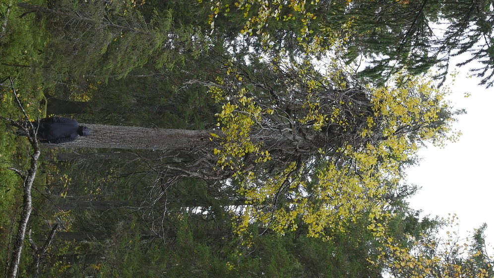 Dear Spruce, or dearest spruce, thank you for providing this splendid seat right next to the forest path. Already walking here for the first time, in the beginning of September, right after arriving in Mustarinda house I noticed you and thought I could come and sit on your lap for a while. I can see from the photos I took. But then I completely forgot you, and even though I have walked past here almost daily, I have not noticed you at all. Only a few days ago, now, when September is nearing its end, I noticed you here by the path and remembered my previous plans. I stopped actually to look at the strange spruce stub only a few meters in front of me on the path. The spruce is broken, although its lowest branch remains alive and spreads like a large fan above the path. I stopped on this spot on the path already twice before while video recording the old impressively formed aspen tree, which stands sculptural here nearby. I was so concentrated on pondering how to record it, that I did not remember you at all. Only when placing the camera stand right next to you, I realized your presence. Please forgive my negligence, I clearly could have come to you much earlier. On the other hand, you have probably not missed my attention, or anybody to sit on your root burl, or what should I call this formation that grown on top your root. It is quite a fine lay-by and I am probably not the first human to sit here. I might be the first human, however, to sit here writing a letter to you. No, I will not hang these sheets of paper on a branch of yours, nor even burry them under your roots; this letter is only an attempt at focusing my thoughts, so that it would be easier for you to sense them. I am not sure if you can actually read thoughts, I doubt that you understand human language, but I could imagine that you can sense my presence in some way and perhaps also my thoughts on some level. Scientists have realized that plants and therefore surely spruces, too, and you as well, have very diverse sensory capacities and they can see different qualities of light much better than humans with their eyes. Why couldn’t they distinguish the intentions of humans in some manner, because it sure does make a difference if I am coming to fell the tree or in a peaceful mind to make acquaintance. Here in this forest, you do not have to be afraid of people beginning felling you, but storm winds or pack snow or their combination have felled many of your relatives. A completely moss-covered trunk in front of me might be a former spruce, although the more recent deceased lying on the ground is a birch. It is so rare to see all the stages of life in the same forest, when such a large part of the forest is so-called commercial forest, plantations of trees of more or less the same age. I wonder whether you know yourself how privileged you are, while allowed to grow here in peace from the beginning to the end of your life? Well, peace is of course a relative notion, there are people walking past here all the while, but anyway. Your trunk is full of all kinds of lichen, and they grow on your old and dry lower branches. And beard lichen, which is such a beautiful sign of clean air, at least so they say. Your crown is handsome and green and this root burl of yours does not seem to bother you at all, unless you count as a bother that some human beings might sit down here to rest for a while. It is actually a good reminder not needing to feel ashamed for one’s handicap or the deformities that life creates on us. They can even be useful sometimes, if not for oneself, then for passers-by. Thank you for that encouragement, if it came to my mind from you. And with these provisions I will now continue my walk. All the best to you for the coming winter and thank you once more for your hospitality!
