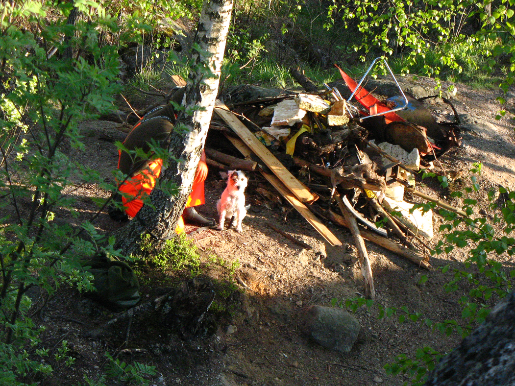 This area is potentiality, an early form of becoming aware and of knowledge, just as carotene is an early form of Vitamin A. The area challenges the human sense of perception: how to perceive subtly, free enough from determination of the past, and to allow things you don't fully understand to affect you? The process of producing this area of potentiality occurs (or here occurred) within the body, therefore it is inevitably partly beyond the verbal. But largely it was the process of producing consciously, through a variety of methods developed in the performance practice, a darkness lightening slowly, in places. For the agent, the experience of such developing potentiality and potential knowledge can be compared to our sense of smell, something that in our outdoor performance came to hold great significance for us human actors both directly and through our canine companion: "in the case of some animals as well as human beings, aroma functions as 'a metonymy for knowledge'." (Lippit 2000: 122) It goes without saying that the transformation of such potentiality or smell into fields of experience and knowledge requires time, as it is a matter for which there can be no guarantees and which is always partial.