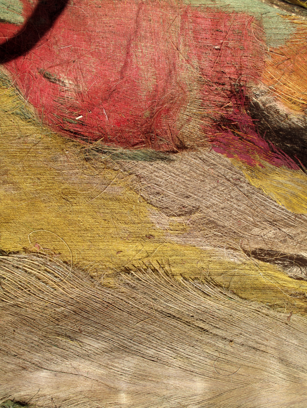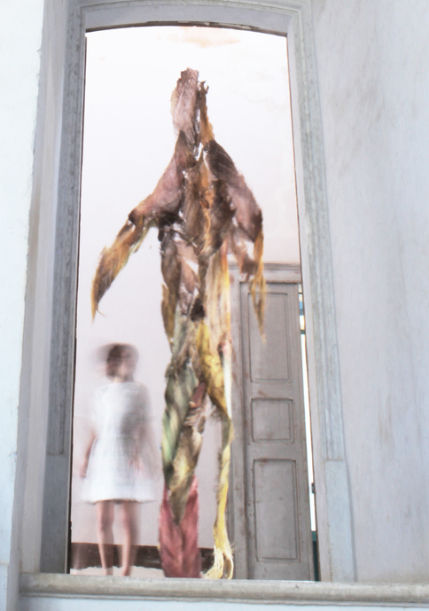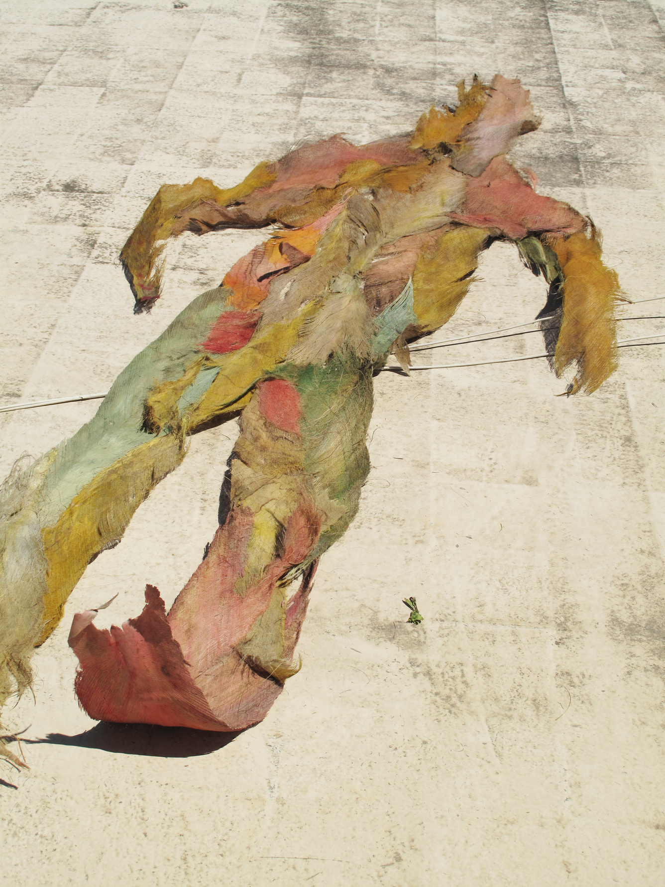 While assembling the fibers I realised that what I was making was not a skirt but a human-like figure that came to have a size of 180 x 420 cm, weighting approximately 600 grams. When I left from Kenya I brought it back with a quantity of raw fibers to be worked out in the following months.