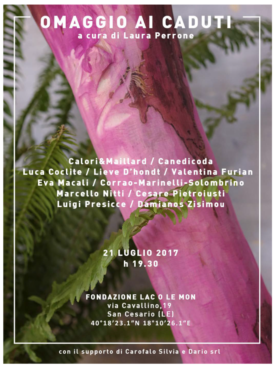 Back in Italy I discovered that a group of fellow artists were organising an exhibition at Fondazione Lac o Lemon in San Cesario, Italy, around the subject of fallen trees and entitled Omaggio ai Caduti. In fact, some months before, a number of trees in the park of the Fondazione were knocked down by the strong winds. I then proposed to include this crafted sculpture, that I named Creatura, in order to be finally returned to its initial vertical position.