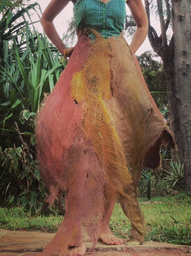I then decided to dye the fibers with local spices (saffron, dried tomato), to patchwork and sow them in order to create a skirt and other pieces of clothing.