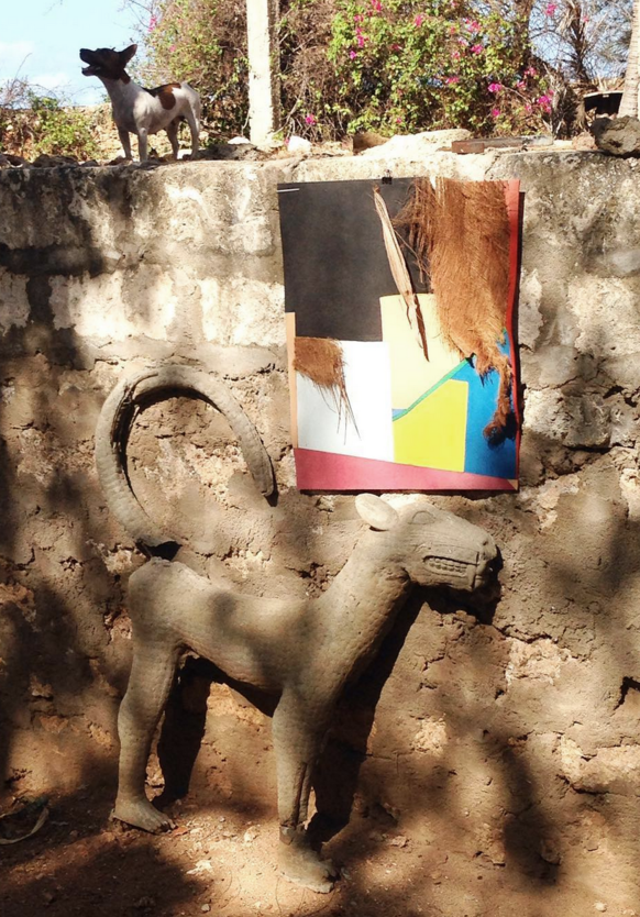 At the beginning of 2017, while spending some months in Kenya, I started using this material together with other found and recycled materials I stumbled on the spot, such as the plastic of discarded flip flops.