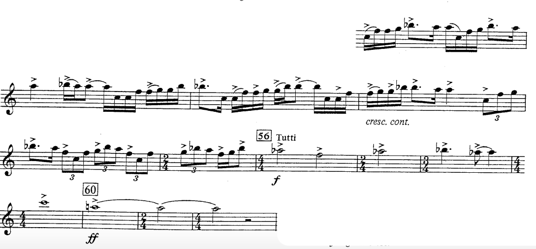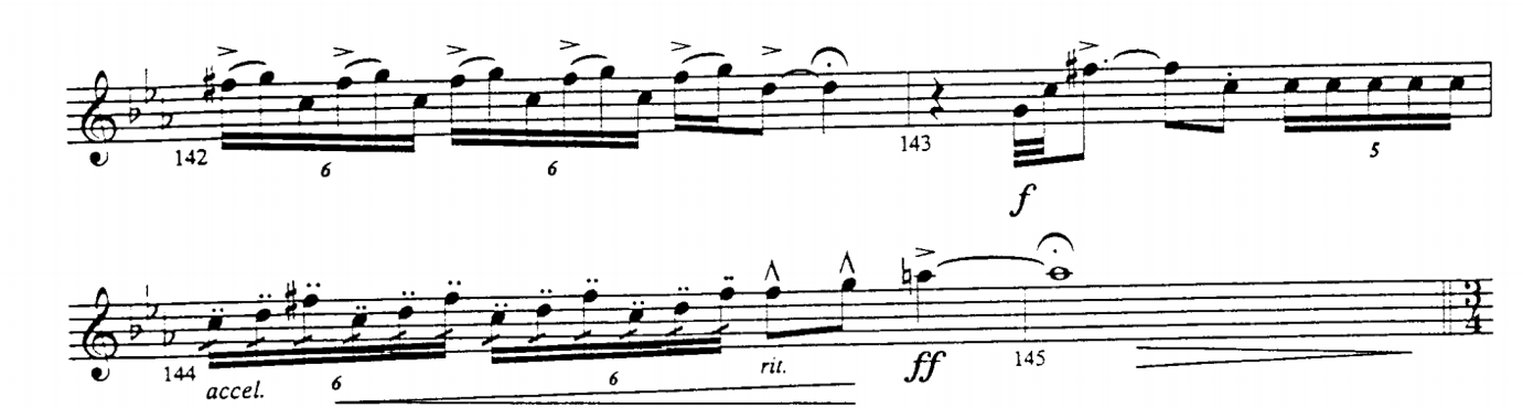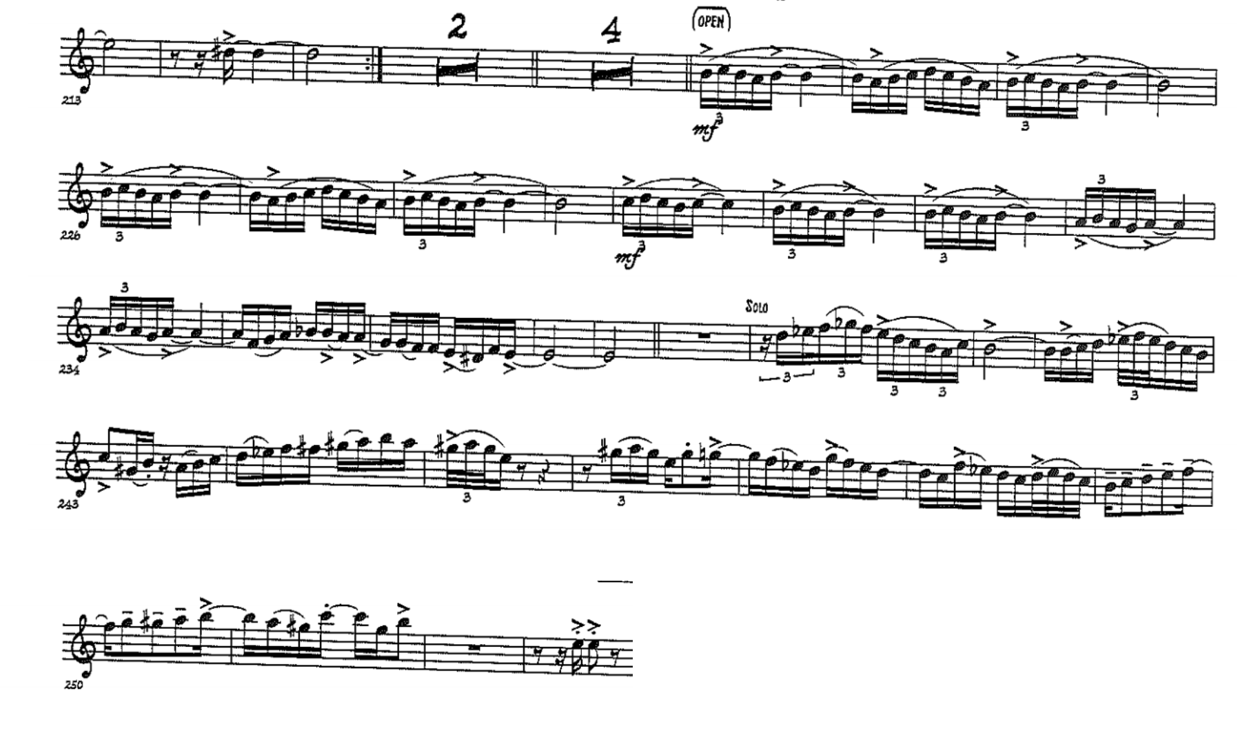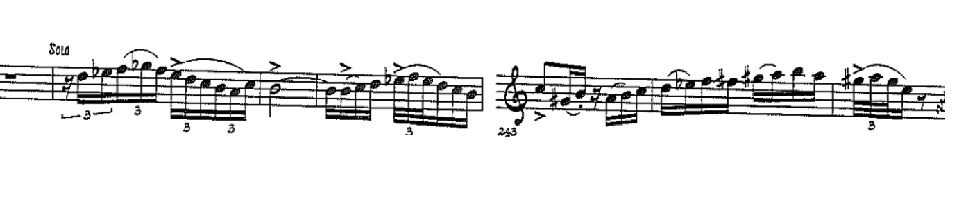 As we can hear in the link and we can observe with the score, we have a rhythmic and fingering complexity, since the solo is quite fast. The last part is quite virtuosistic, so we need to practice with different exercises really precise first all the notes.