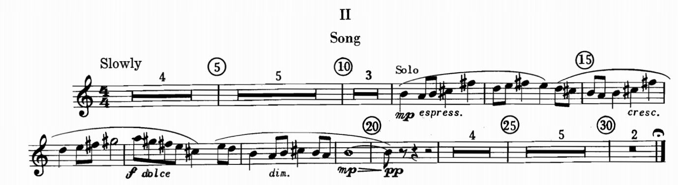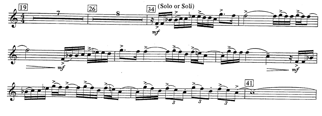 As a conclusion to this solo, and a bit in common with all offstage excerpts, the concept has to be analyzed, and a balance must be found between how the musician wants to perform, and what he must do so that the audience can perceive it. In this type of solos, a good control of the air and a more aggressive articulation, will help for an improvement of the interpretation.