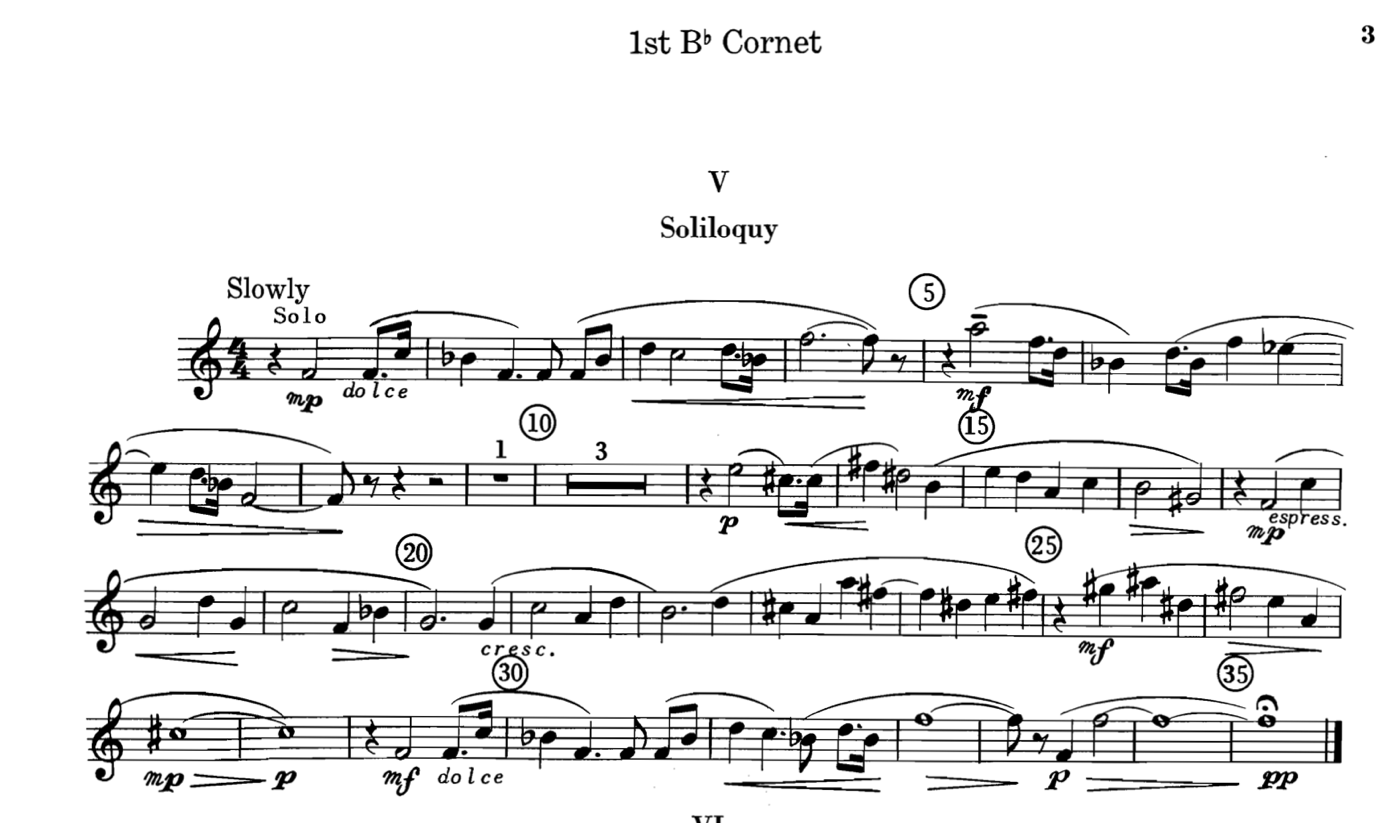 The greatest difficulty of this excerpt is found in the dynamics. It’s a soft solo, which requires great control at the embouchure. It is common that when the trumpet player plays softly, he stops using the air column and closes his lips. Here we can hear Tim’s first example: