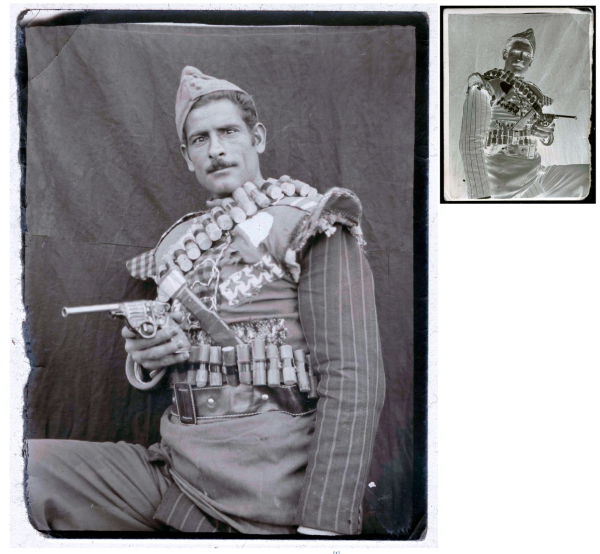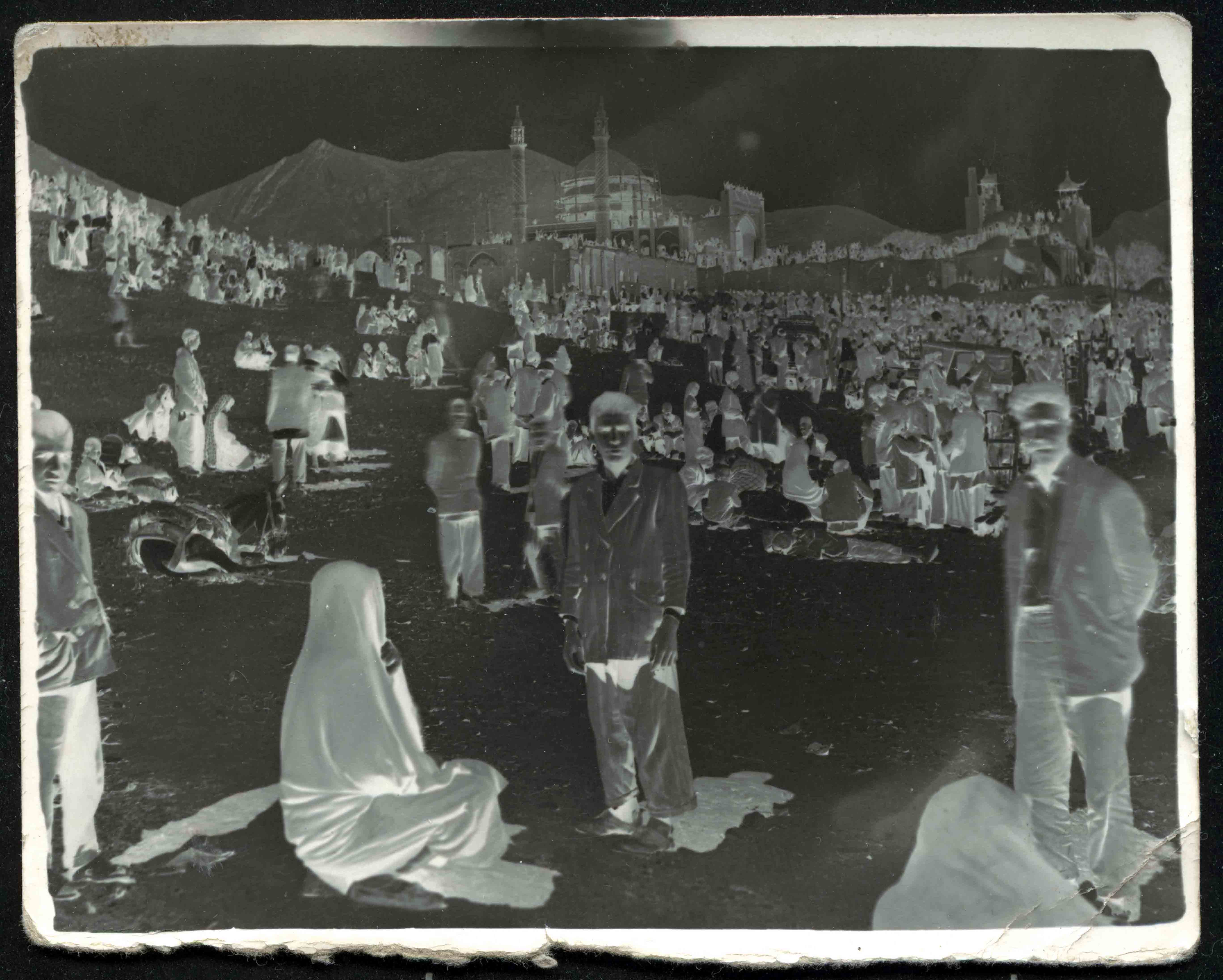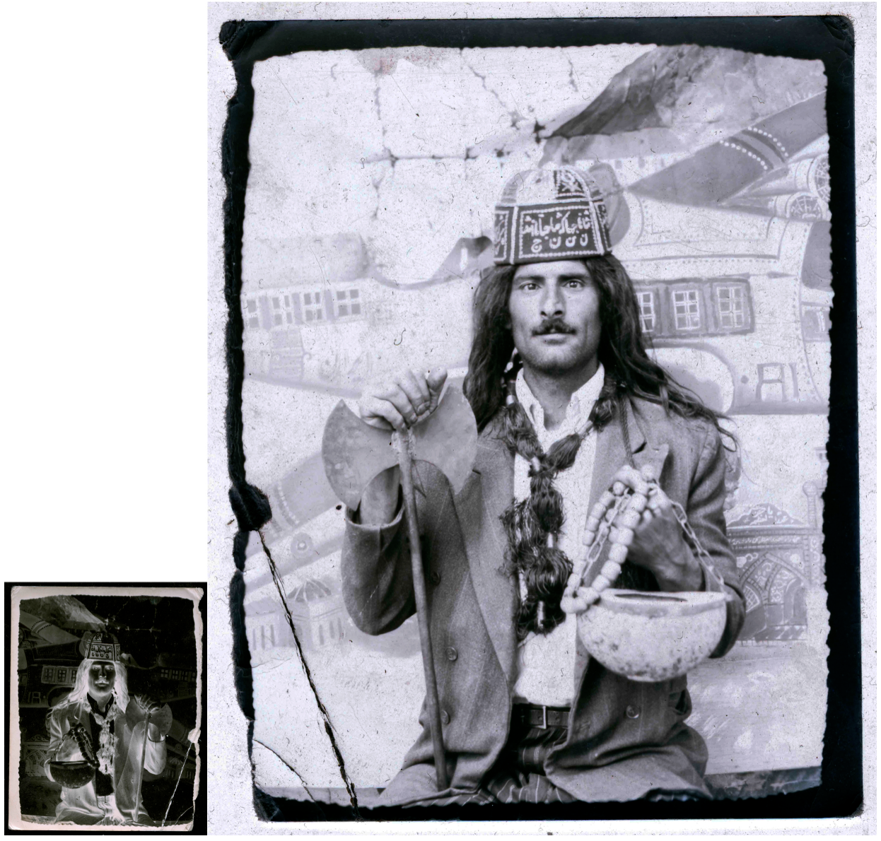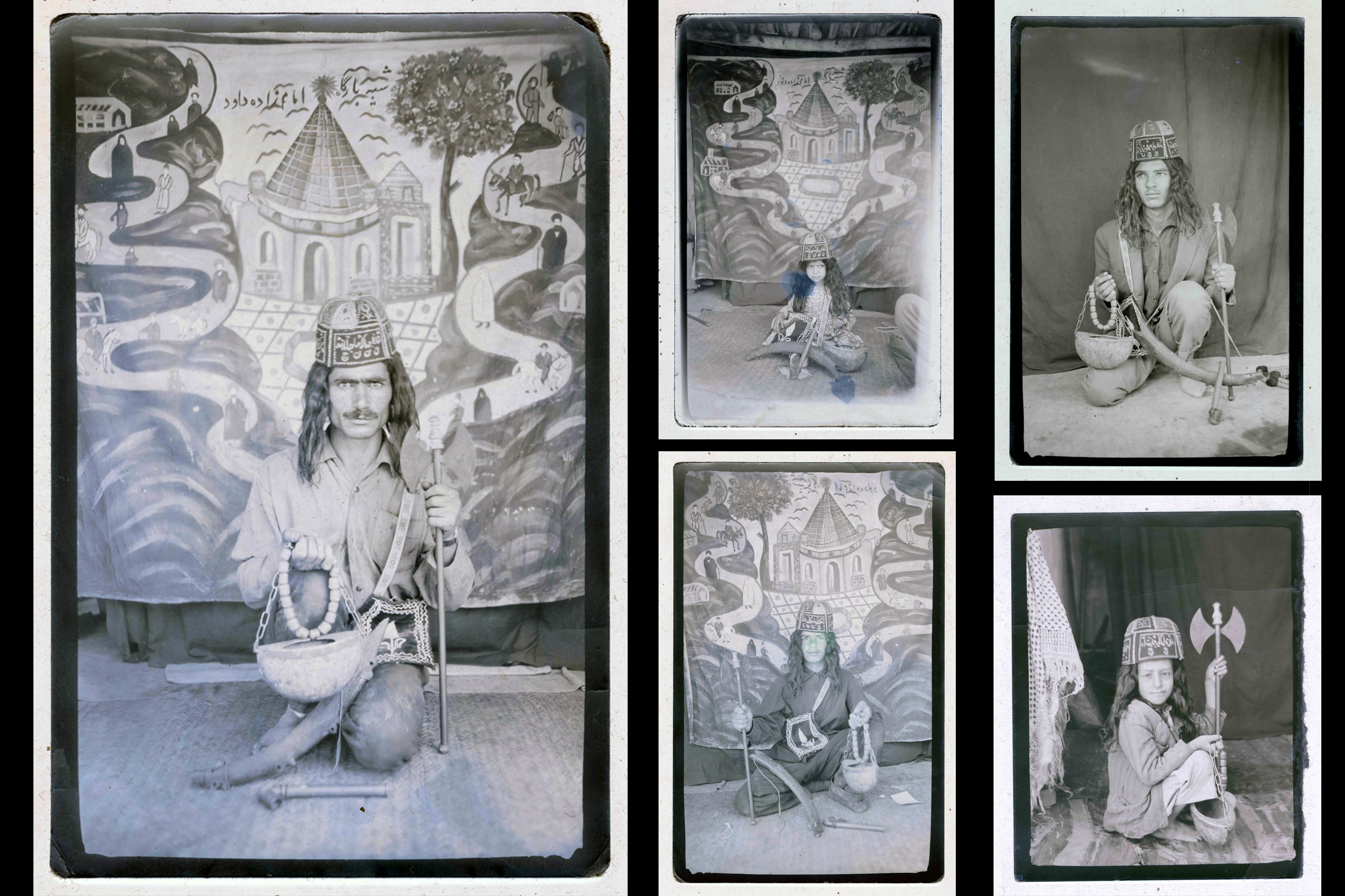 How is it that the figure of the dervish became the subject of his itinerant photography business? And why were the working-class, peasant immigrants of southwest Tehran interested in dressing up as them? There is no filmic source material to be found here. No relation to the Cinema Jay and its spectacular movies. The common genealogy of multiplicity from reenactment in relation to movies doesn’t apply here. There is no Sangam or Lawrence. No love drama, no partisan fight.