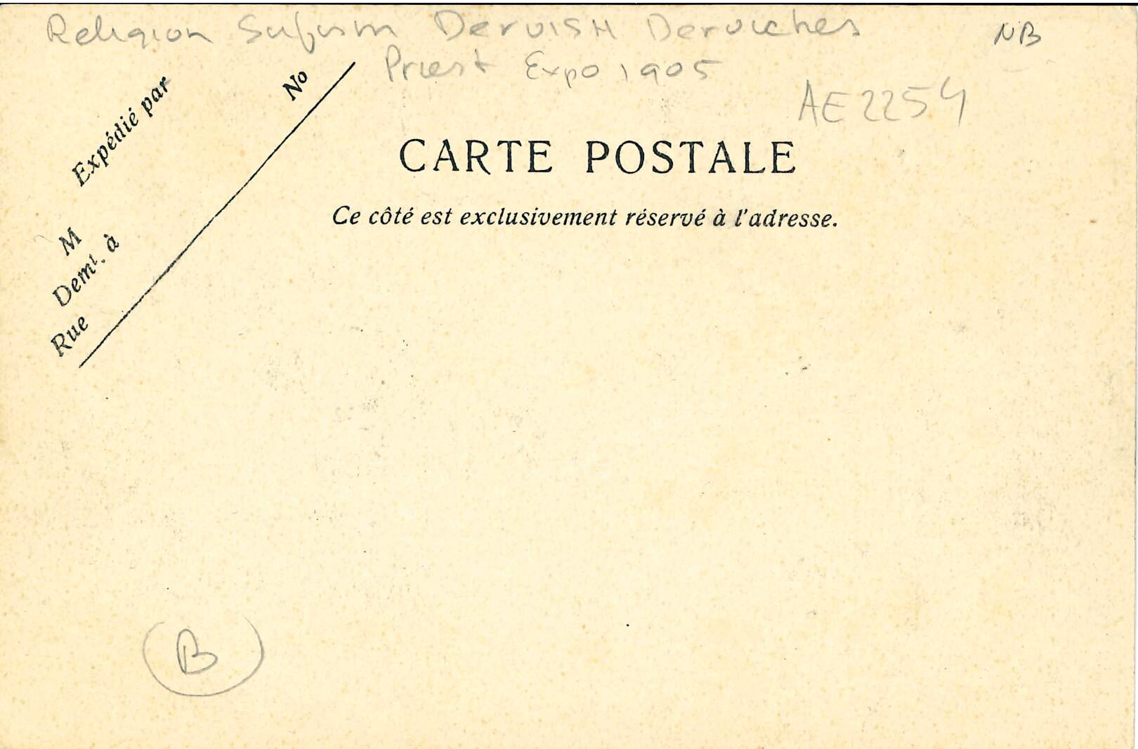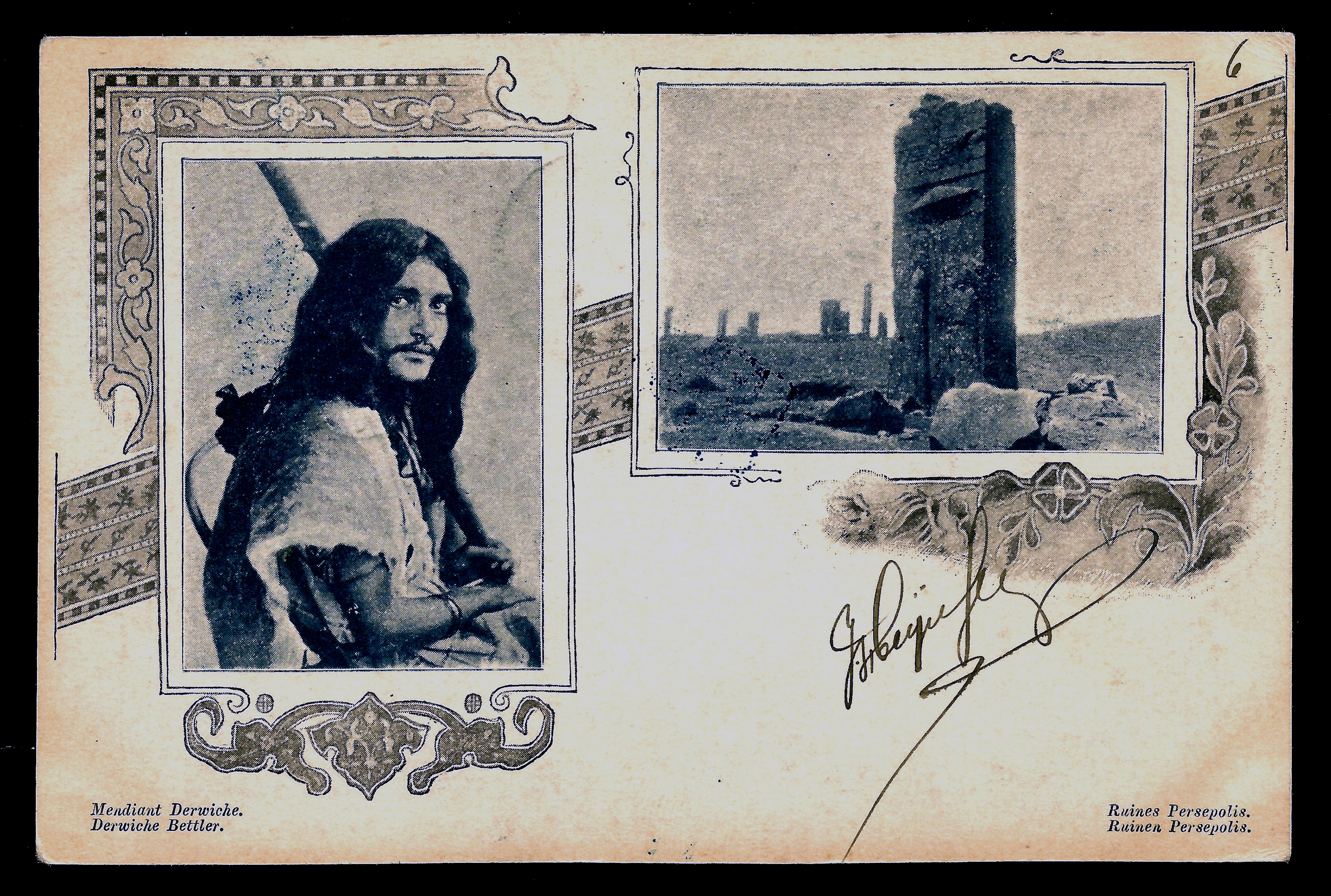 The representation of the dervish as a desirable subject continued in the beginning of 20th century. A large number of postcards were produced, mainly in Persia, and sent to Europe, where they would be sold.