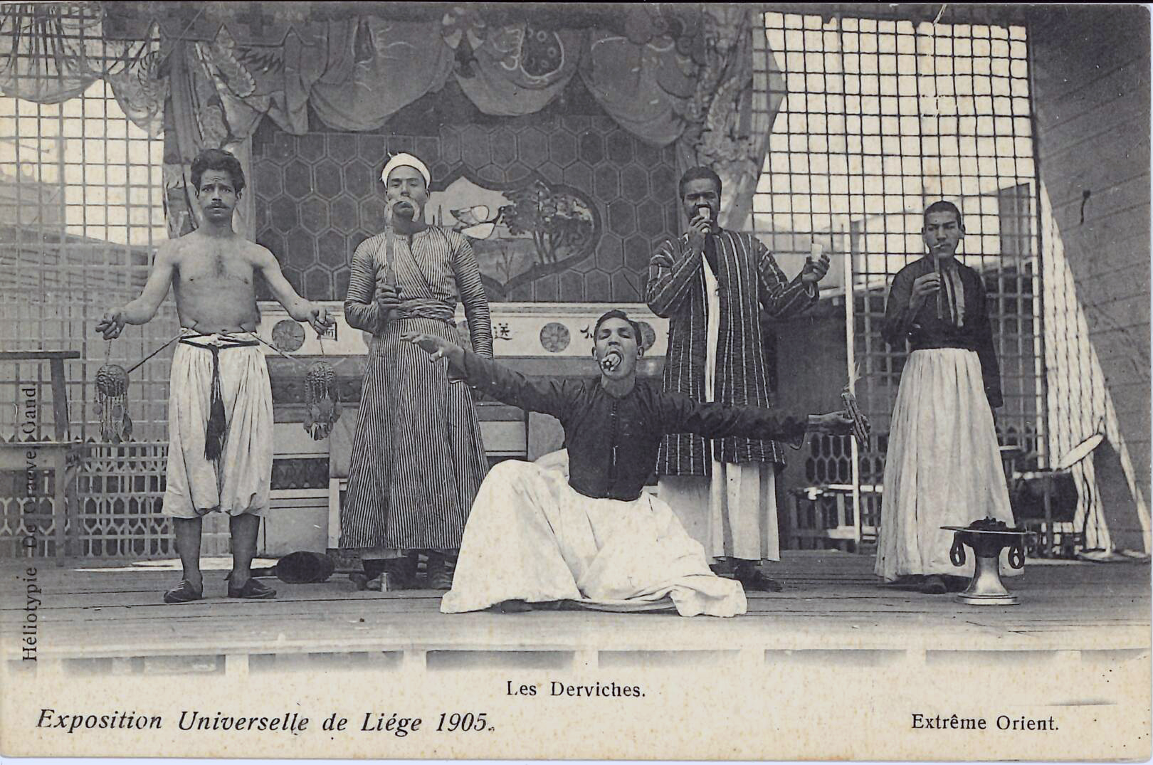 European readers, who had read about and seen a great deal of images of dervishes in magazines, paintings, pictures and photographs, eventually sought to bring them to the west. And so, in 1899, an event was organized in Paris to coincide with the zoological and ethnographical exhibition at the Jardin Zoologique d’Acclimatation.[14] In the heyday of French colonialism, Parisians’ curiosity was piqued by the customs and lifestyles of foreign peoples; indeed, they exhibited “primitive” tribes in a human zoo. Among them was a group of around twenty Sufis in a pavilion called the “Théâtre des derviches” (Theater of the dervishes).