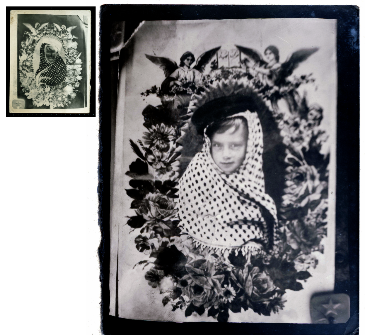 Bydler writes about another of these photos, where a boy looks coyly from the photo and straight at her. [3] He is dressed up in a keffiyeh and framed by an oval-shaped wreath studded with angels and flowers. In fact, the boy smiling playfully is my uncle. The aesthetics of the image reminds her of a Palestinian martyr. One assumes that someone more grown up, possibly my grandfather, has dressed him up like this and framed him in this saccharine-sweet way. He looks far too young to be a revolutionary. Could it be another scene adopted from the global cinema, one where he’s pretending to be an Arab? To my knowledge, however, there were no Arabian films played at the Cinema Jay. Unlike contemporary Arabian music, films from Arab countries during that period (most of which were made in Egypt) didn’t travel to Iran. There was only one movie about Arabia shown at the Cinema Jay: David Lean’s Lawrence of Arabia (1962), produced in the UK by Horizon Pictures and with Peter O’Toole in the leading role. Was my uncle’s costume an attempt to assume the role of the white savior, immersing him in the explorer’s adventures? Or was it just for fun, was he putting on a show in front of the camera for the people who had just left the cinema and wanted to relive their memories of the hero? Or was it simply something my grandfather suggested spontaneously, so that he could permanently imprint his memory of the film onto photo paper? And was the portrait of his son—my uncle—simply a practice round prior to an evening of work, before he left to wait for customers in front of the Cinema Jay?