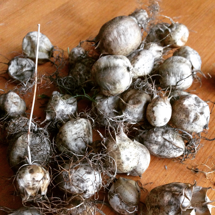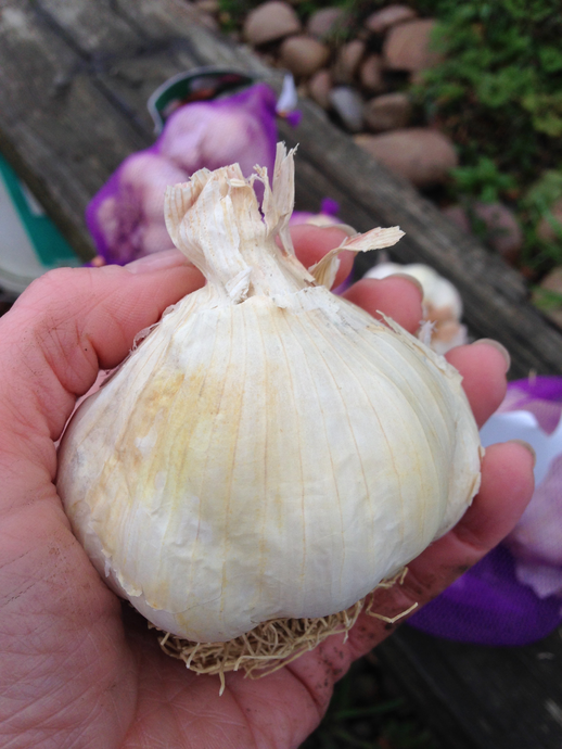 The garlic is softneck and that is new for me. I plant Mersley Wight and Provence Wight. They are huge bulbs and the cloves fat and juicy offering 160 cloves altogether from 8 bulbs.
