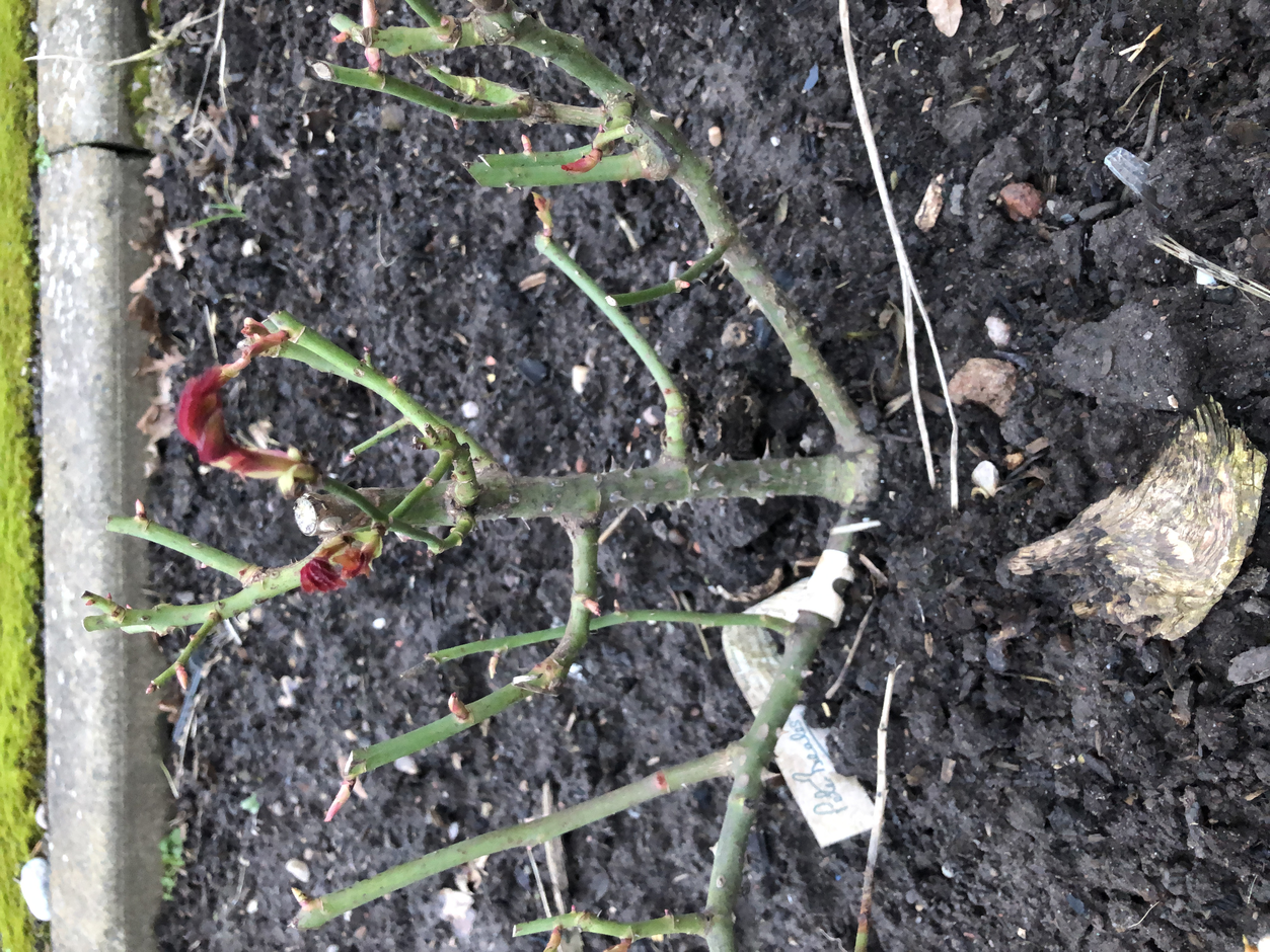 Today I wake up with a pain in my leg. I must have slept strangely. A walk to the allotment and squatting to look at the buds on roses and the spring bulbs coming through helps.