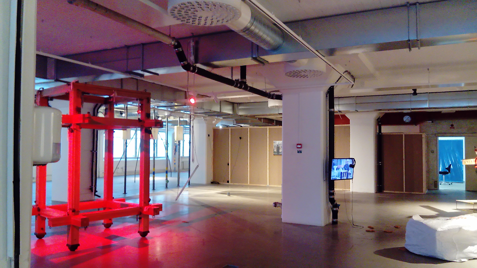Our most recent concert was a duo between hurdy-gurdy player Bruno Andersson and I at a former stocking factory on Virkesvägen in Hammarby in Spring of 2019 (the street name means "Timber Street" in Swedish, and it lies in Kvarteret spärv, or "The Sparrow Quarter"). Here we played a piece based upon transposition of recordings of the kinds of machines that would once have been found on the site when it was a stocking factory, as well the masses of large-scale construction machinery in the area, and the sparrows for which the quarter is named. We played in the soon-to-be demolished factory, recreating machinery in the huge empty room, calling forth the sparrows who give the quarter its name, and who might soon be driven away by the Ikano Bostad developers. Over the past hundred years the building had housed facilities that produced stockings, mirrors, glass and then had become a food court for industrial workers in the area. Now it was to become the sort of condominiums that are going up rapidly all over Stockholm; cement module construction in international pastels, with glass or aluminum balconies, and units selling for top prices.