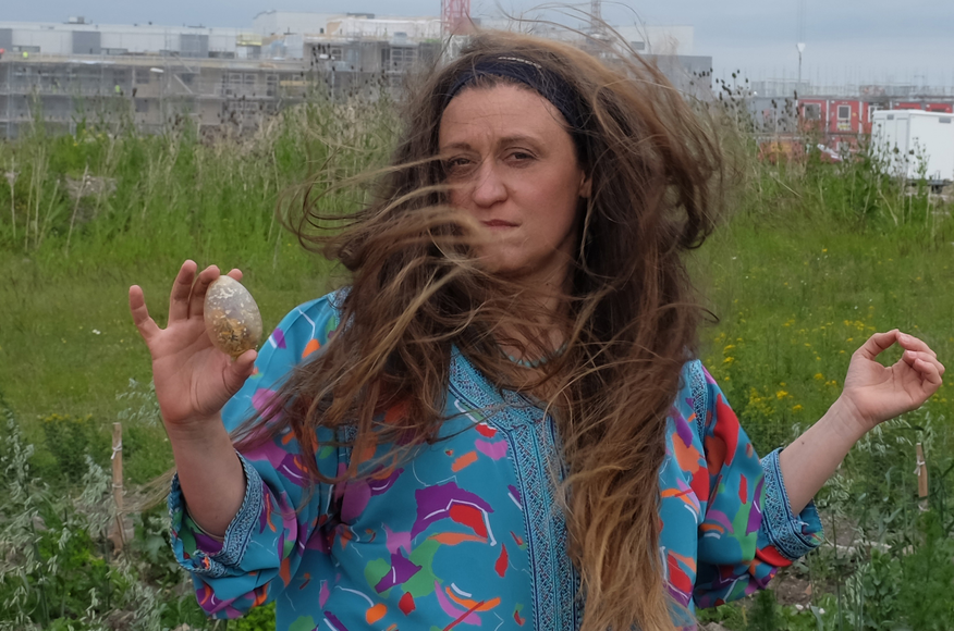 Performing with edible sculptures crafted to contain seeds, herbs, fruits and spices cultivated in the evolutionary gardens. The edible sculptures were realised in collaboration with chef de cuisine Lorenzo Eleuteri.