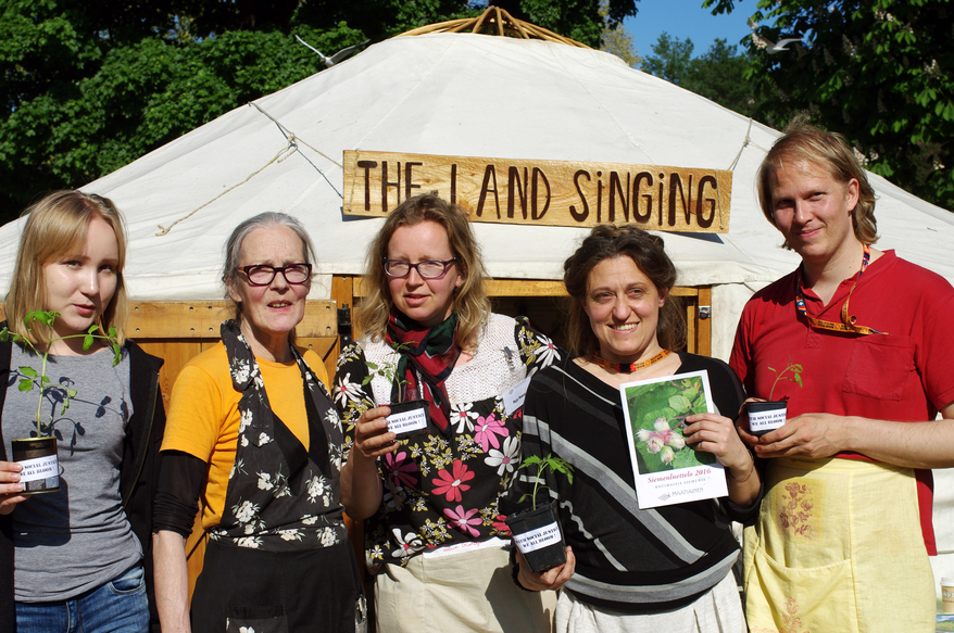 Installation The Land Singing at World Village Festival in 2016, in collaboration with composer Timo Tuhkanen and the members of Maatianen Association, an informal seed bank safeguarding biodiversity in Finland since the 80's.