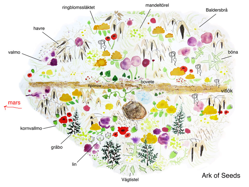 During the first ten years of my research with the Ark of Seeds (2007-2017), I had sporadic and tangent encounters with a curatorial approach. The artistic process was very intense and demanding, almost rioting to find a form. Recently, it has turned towards a more conceptual and slower piece, more receptive to listening and reading traces. The drive for production has left space for an action. This newfond shift doesn't seem anything original, but a sort of natural consequence of the economic, political and environmental crises facing us. Rather, an anthropological and cultural reflection of the reality taking into account its plasticity.[22] In this light, the dialogue with curators opens new perspectives towards future research questions, and connects the research with a relational approach.