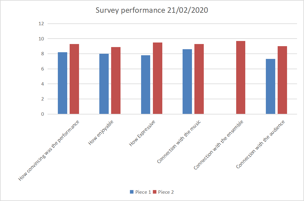 The graph below shows the survey results. The audience consisted of students of Master in the Royal Conservatory of the Hague and one teacher: