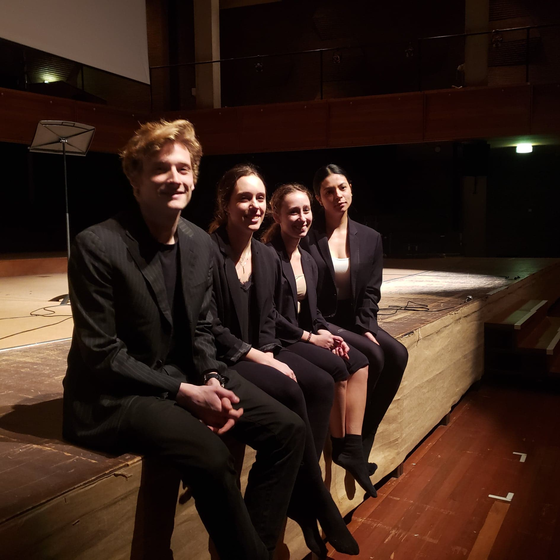 My feeling on stage, on the concert of the 21st of February of 2020, was completely different from the concerts I used to perform before starting practicing improvisation and body movement. The aspects that changed included my sound, I was freer in my playing, my right arm was less tense, my breath was lower and I felt more grounded. Usually, before performing, I am very nervous and I do not want to perform, but yesterday, even though I felt anxious, I was looking forward to performing. The idea of moving on stage, and to “improvise” not only my playing, but also the reactions between the other members of the ensemble during the entire piece, made me feel very excited about performing it.