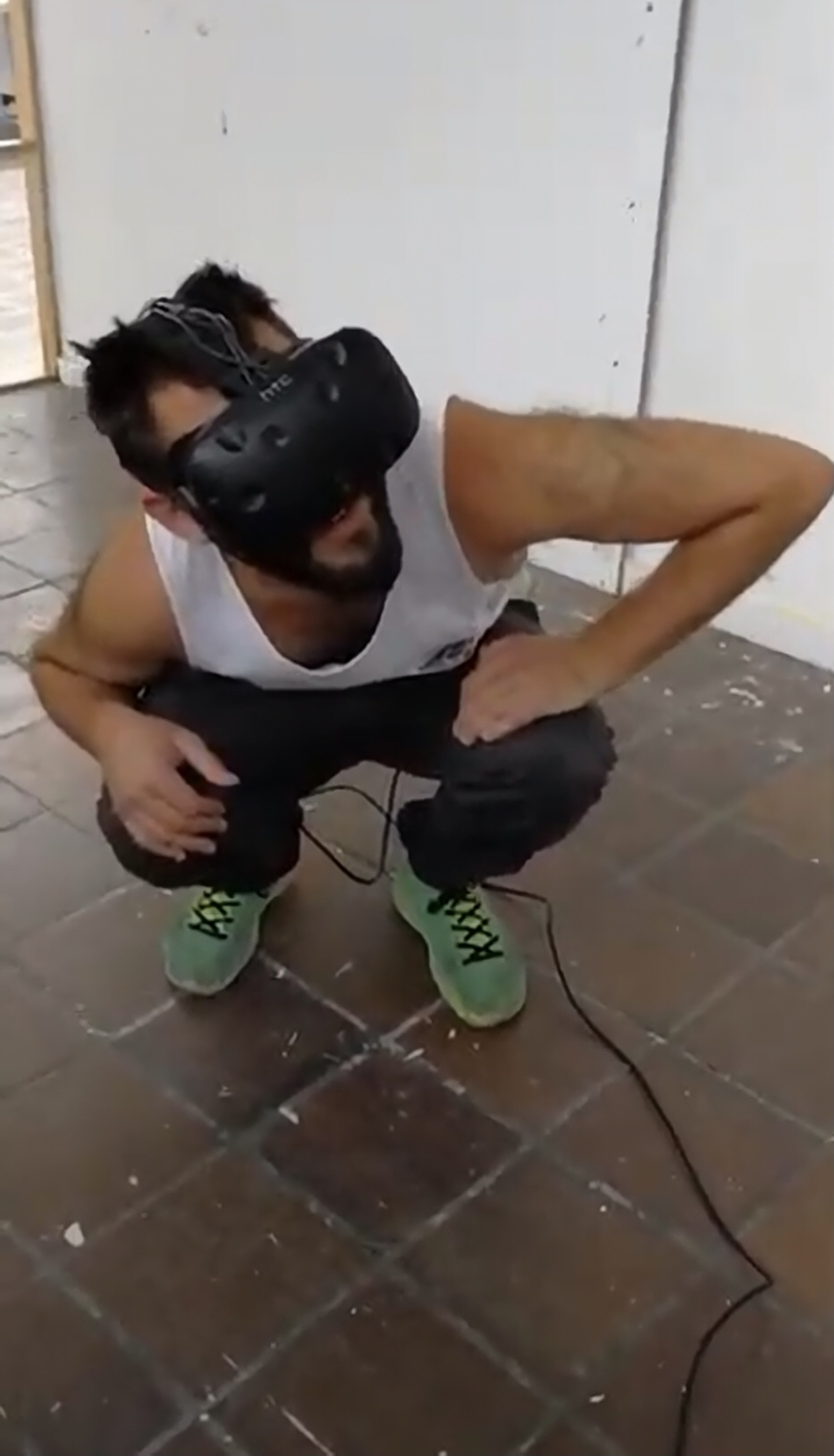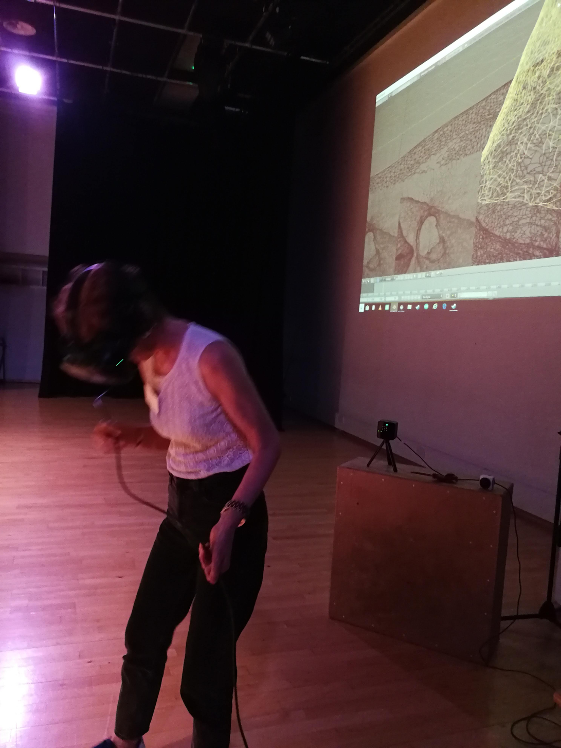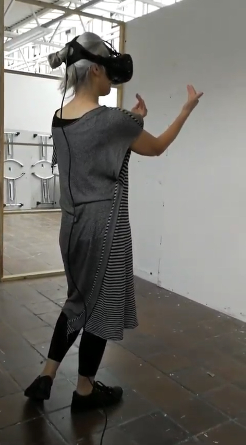 The video above and the stills on the right show two participants in the VR iteration of Imperceptible Dance 2, which included the virtual foot flipped to create a cave-like structure below the participant. This iteration was shown at DMU in June 2018 as part of the CTEO conference that I co-organised with several universities as part of an AHRC/M4C funded project.