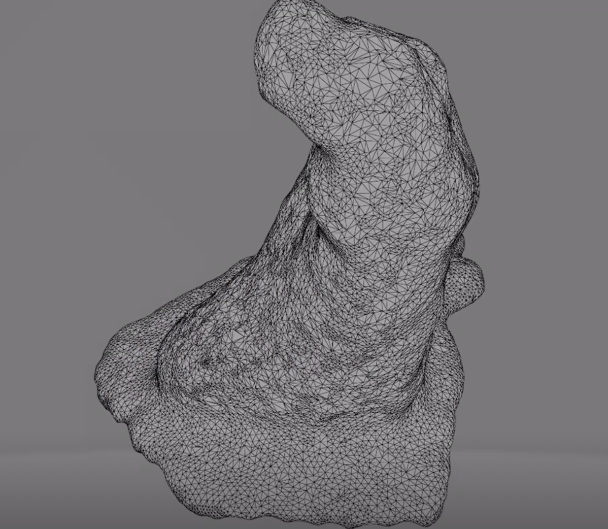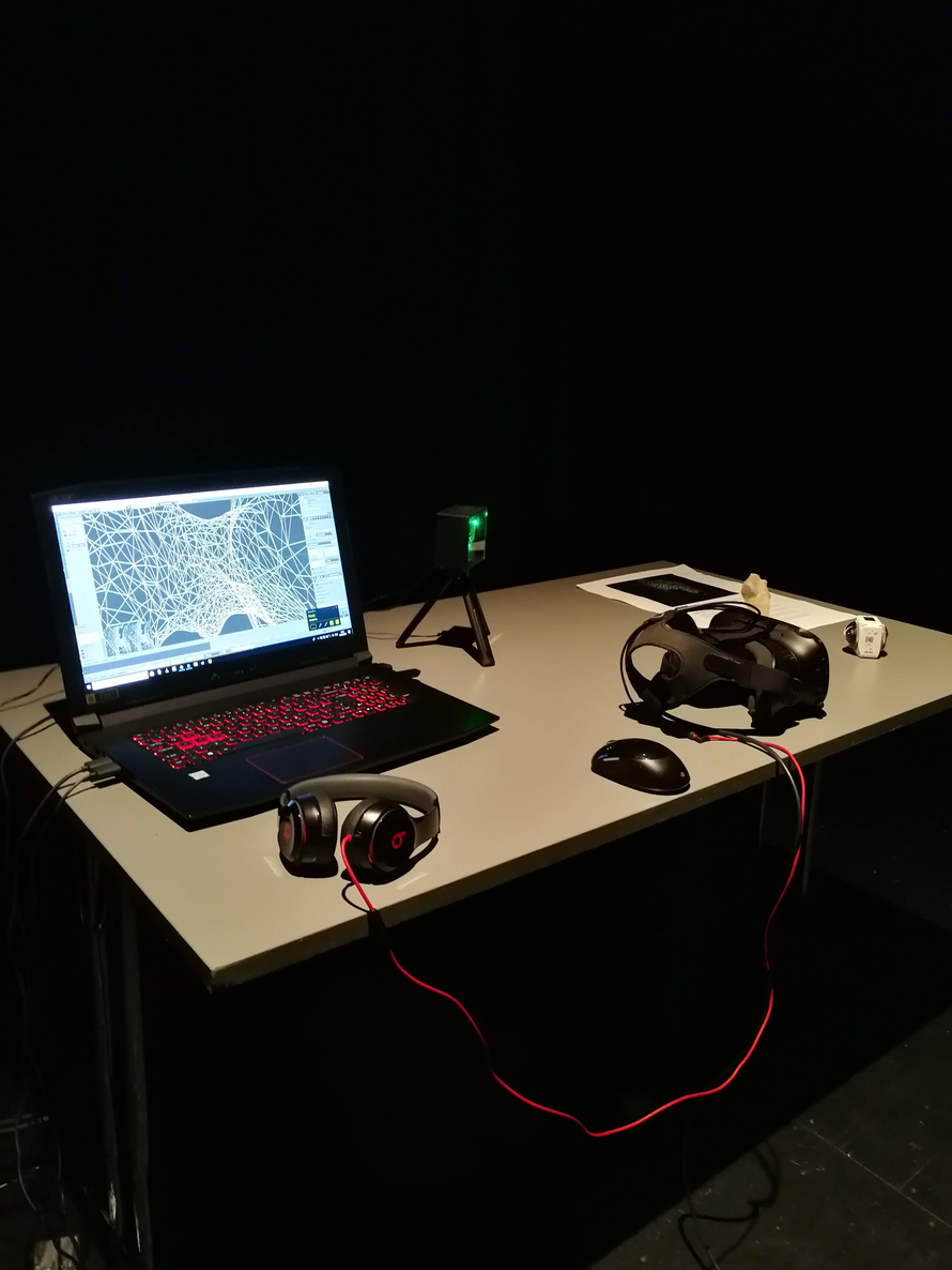 The screenshot above shows the final iteration of the VR artwork, where I took the original solid body, on the left, and combined it with the lace-like scan from a fibre-glass render, and the virtual foot which I flipped to create a cave-like structure below.