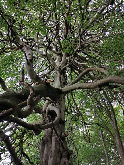 I chose an old Beech tree, which was possibly 40 metres high, due to it's knotty branches which looped back on themselves inviting the viewer to look upwards to the vast canopy, or a child to scramb up the branches!