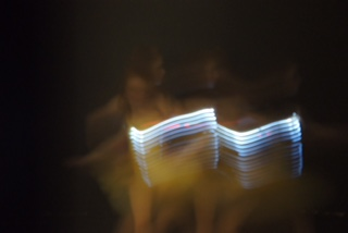 The first series, young dancer aged 14, uses a corset designed with a heartbeat sensor and a series of leds, which flash on and off acording to the rythmn of the dancer's heart.