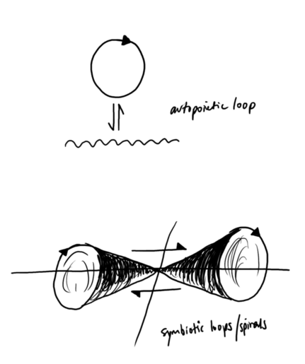 Autopoietic systems are at the core of all living systems according to biologists Humberto Maturana and Francisco Varela (Maturana & Varela 1987). Closed within a flexible and porous membrane or boundary a dynamic metabolism loops and the unit is alive – be it a cell, fungi, anthill or social system. This is the ‘machine’ of a living system, producing life in an ‘ontogenic’ process; the ‘structural change in a unity without loss of organization in that unit’. (Maturana & Varela 1987: 74) It occurs in continuous interaction with the environment and with the inner dynamics of the autopoietic unit, and also between separate ontogenic processes (which forms larger ontogenic loops).