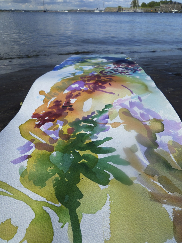 Watercolor Series is based on the exaltation of the Cloud Garden and the meadows and beaches on Harakka Island. It seems that the leaves and blooms provide suggestions conveyed on the paper.