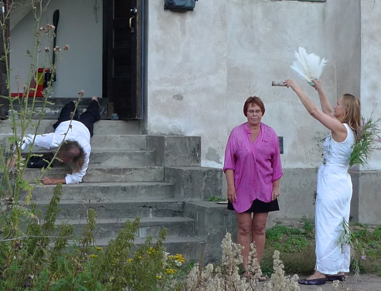 Collaborative NAPS, Päivi Maunu and Ilari Kähönen performed Series of Clarification being a ritual to meditate inner feelings and experiences, even an energy of the land. Smudging has several cultural backgrounds. The Fireweed Clarification was implemented in front of pre Cloud Garden in 2014.