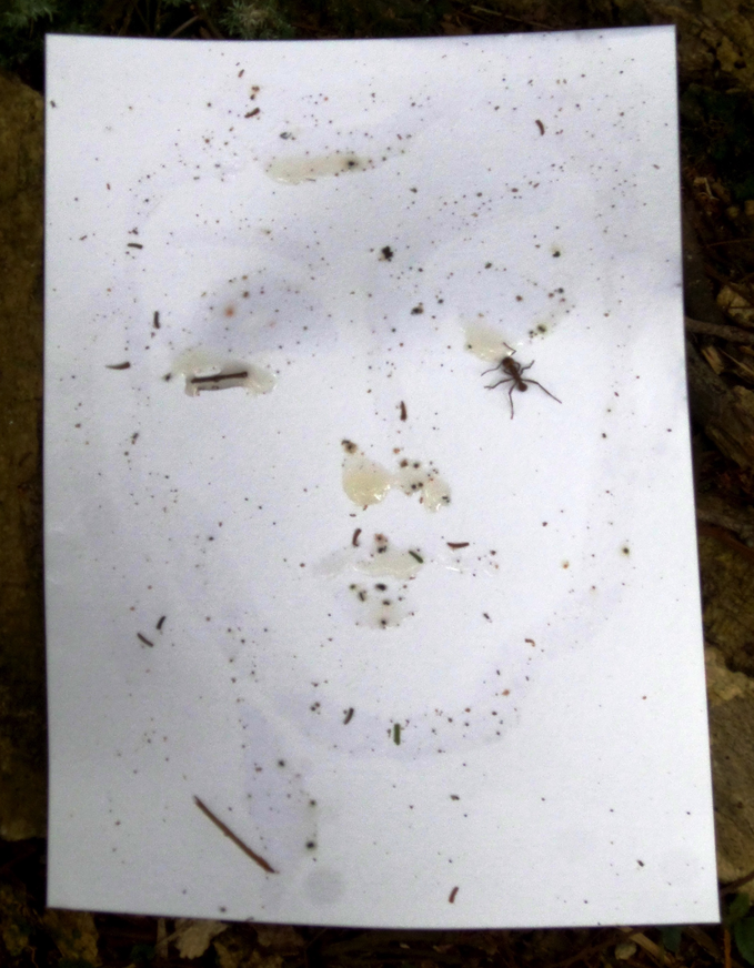 Signature Marks for the Bees, environmental artwork Collaborative NAPS, Päivi Maunu and Ilari Kähönen represented together with Harakka Nature Center. Signature Marks for the Bees that was an assembly of symbols expressing direction-finding (recognition). Mosaics devoted to the bees were made of sugar-cubes accommodating only natural elements with colors derived from charcoal ink, plants and berries. The symbols could be found on the map from the Cloud Garden and elsewhere in Harakka Island.