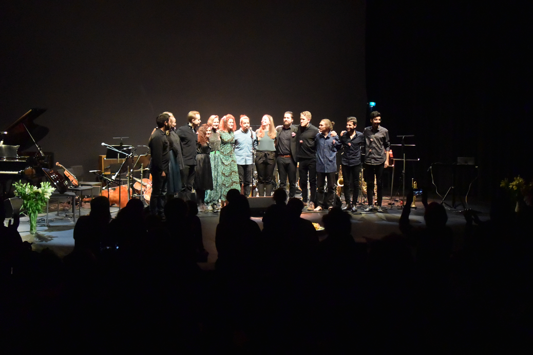 I chose the musicians for the ensemble carefully taking into consideration both the instruments they played and their musical background. My vision was to have a strong rhythm section (piano, percussion, drums, bass guitar), four wind instruments (clarinet, trumpet, saxophone soprano or alto and saxophone tenor or flute or bass clarinet) four string instruments (oud, violin cello and kantale or harp or additional cello).