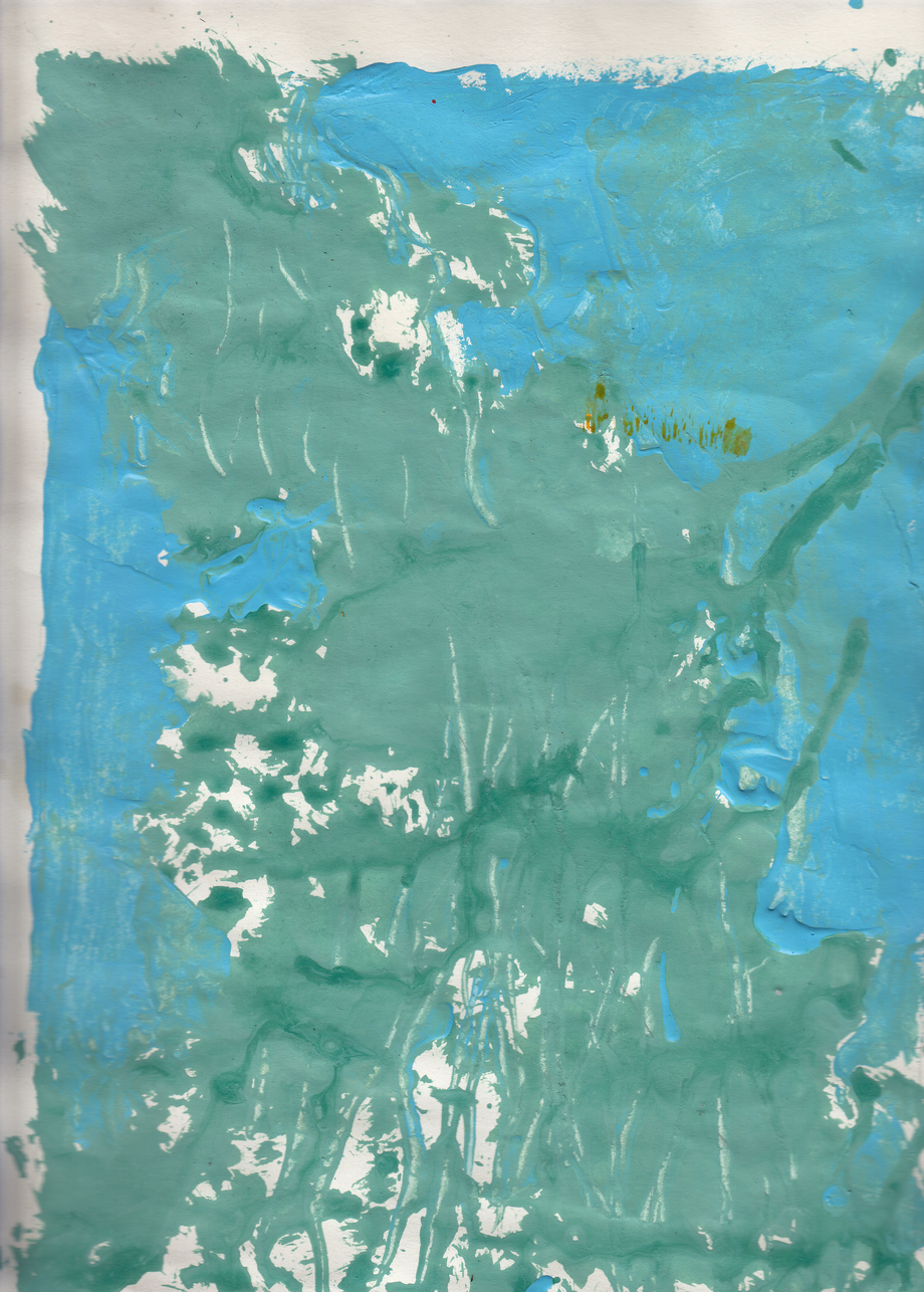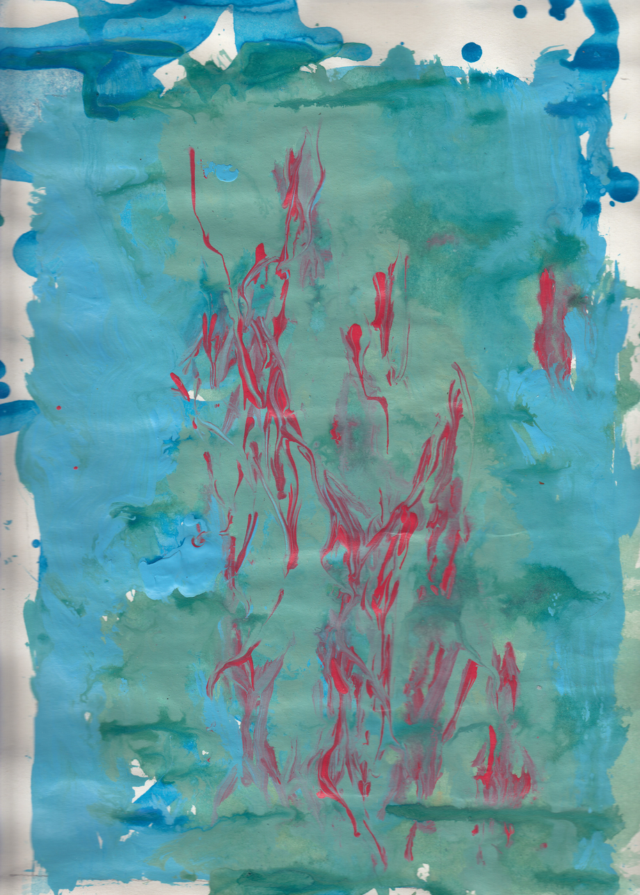 Working on a series of experimental paintings from outdoors observation and then in the studio, I ended up with the basic questions about what happens at the borders of two colours and how we formalise external sensory information. Working directly with paint, without preparatory sketches or underlying drawings before applying paint, was a revealing challenge of painting’s possibilities as a stand alone practice, but also as discourse. I first experimented with the painterly technique of pouring liquid paint directly onto paper and moving the paper around to apply the paint for painting a tree branch from life. Although this process was difficult to control for a realistic result - which led me initially to call the series “Something I cannot control” - it was appropriate for expressing the movement of the tree branch with the wind and the changes in light caused by that movement.
