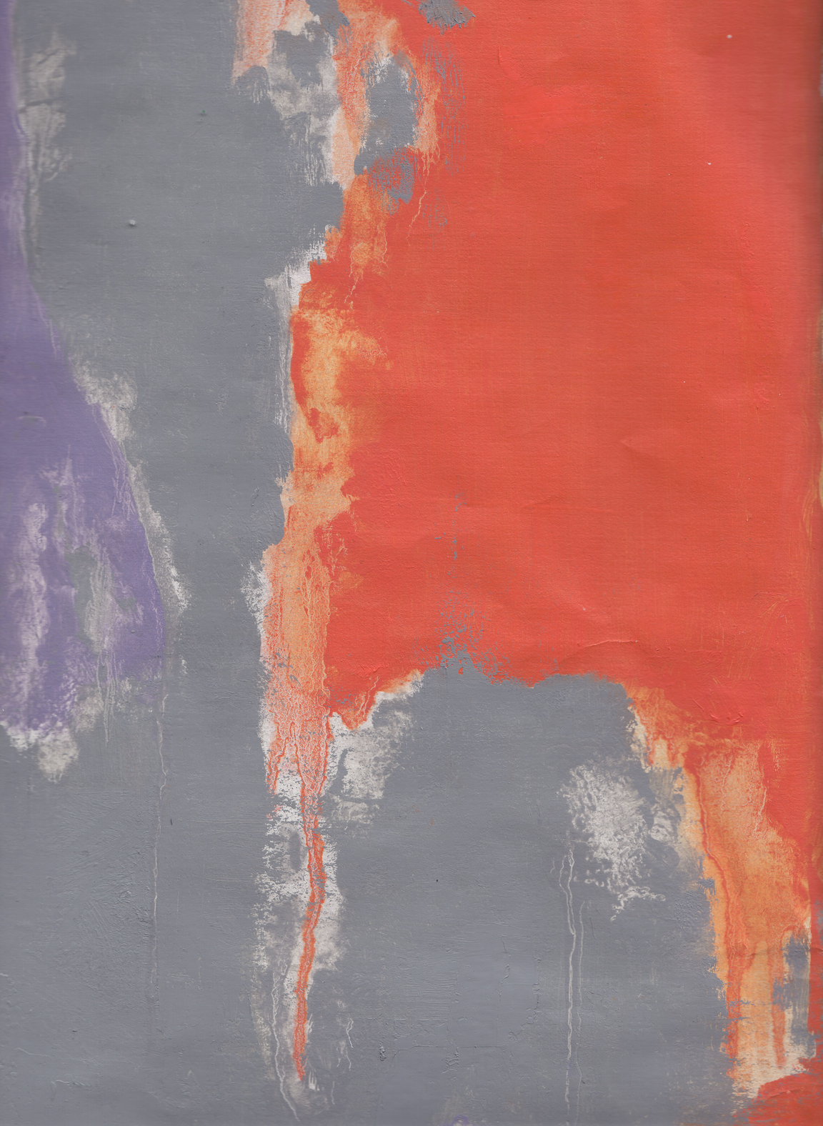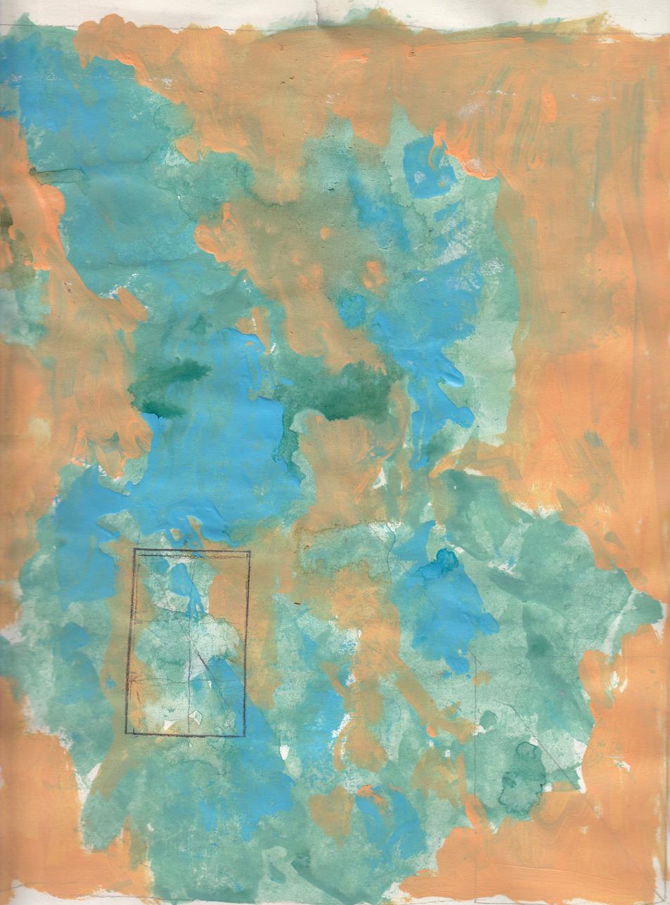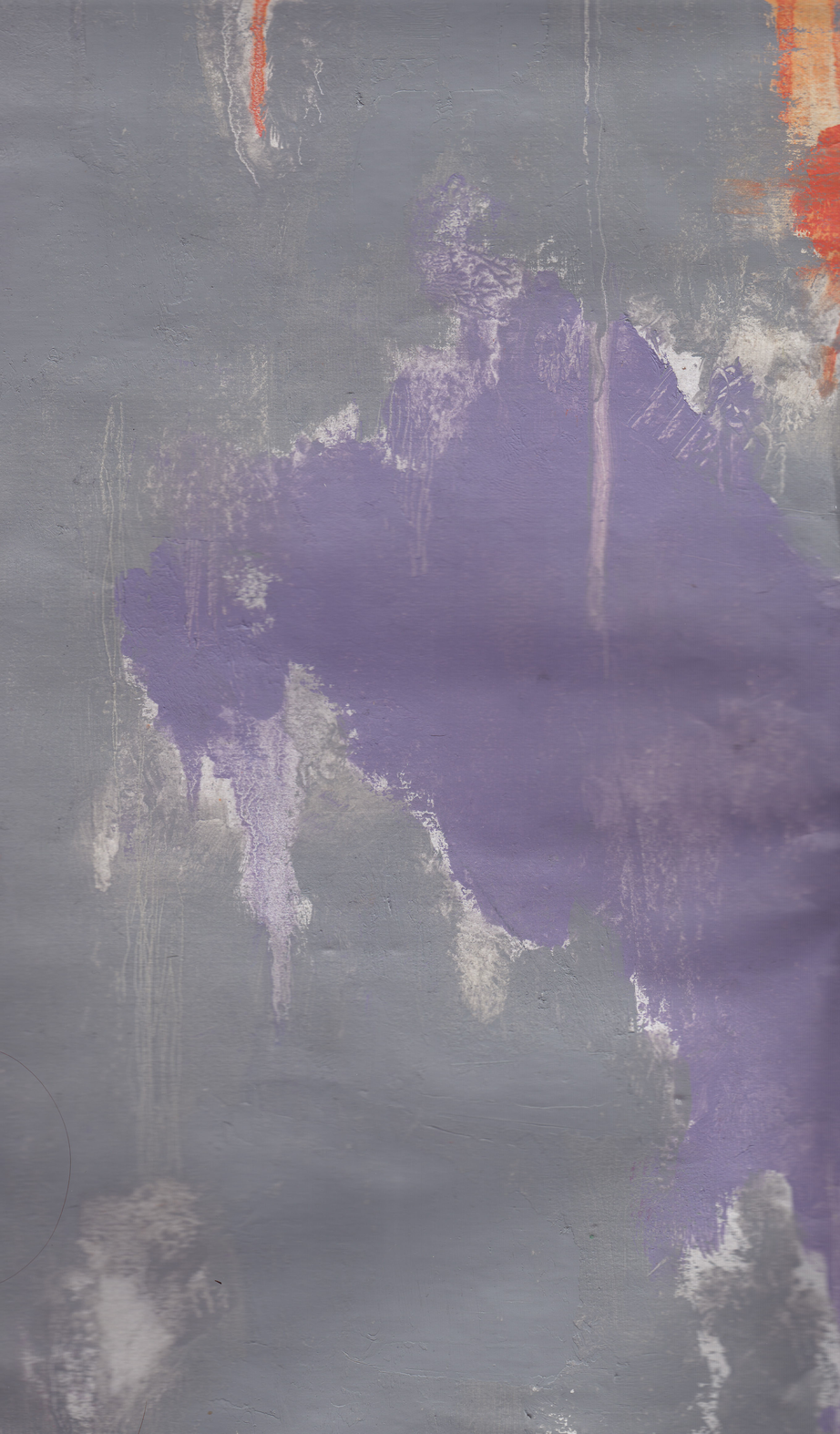 Back in the studio, I singled out a small part of one of the paintings to make a larger painting with brushes, without any underlying drawing again, by paying attention to the areas that were not covered with paint when I was trying the pouring technique. In that stage, the initial object of observation was not relevant anymore. Instead, the emerging inquiry was about the edges of methodically painted surfaces. I noticed there was an almost imperceptible area at the borders of different areas of colour that were neither one colour, nor the other. I wanted to purposefully expose these areas by meticulously smudging the edges of the painted surfaces to make visible that there is a small area around the edges, which remains undecided.