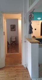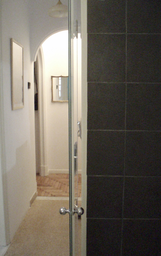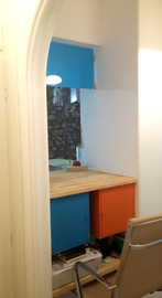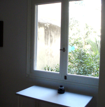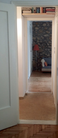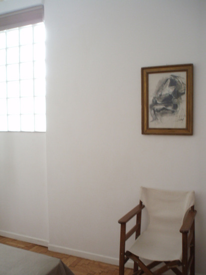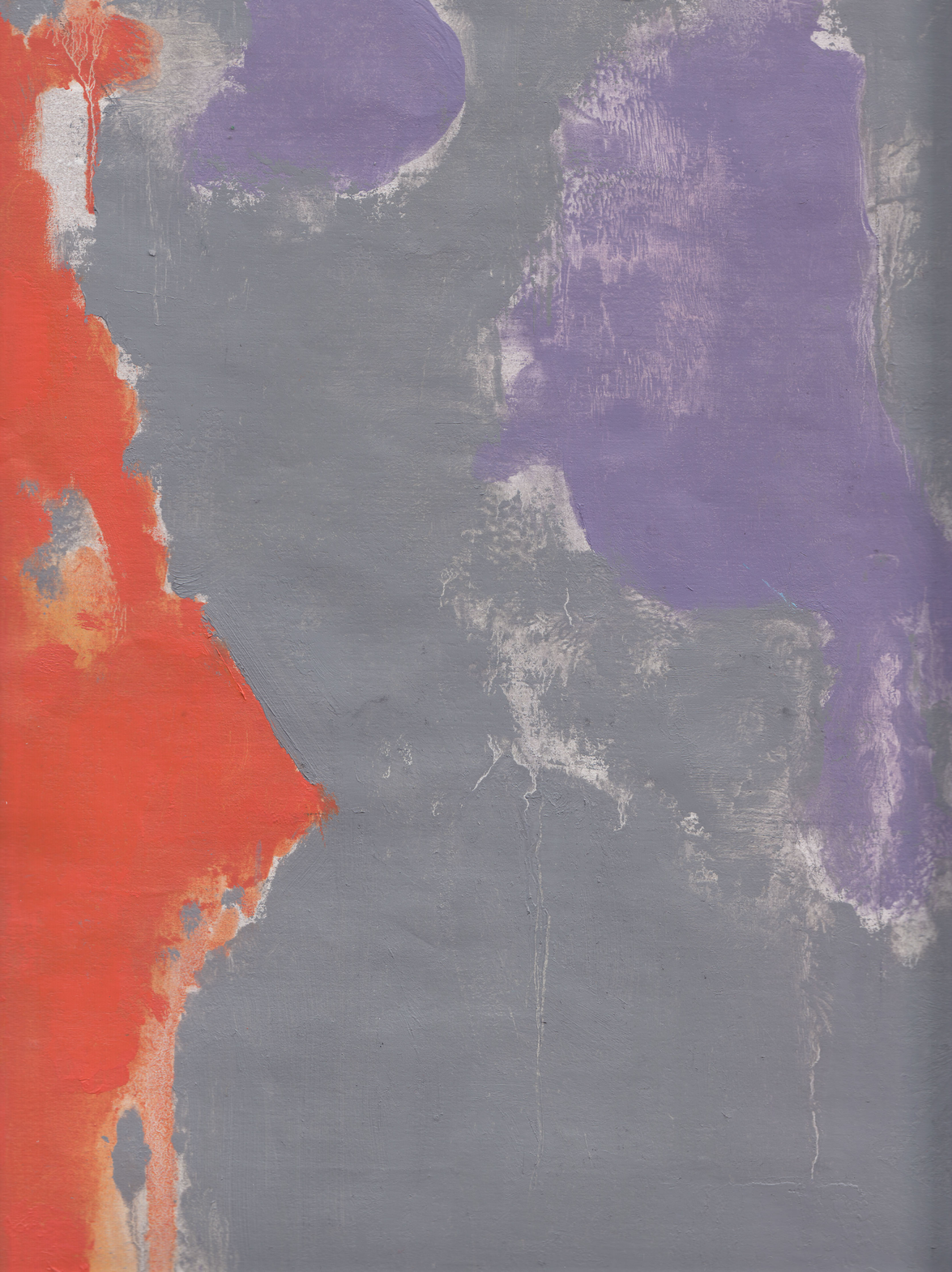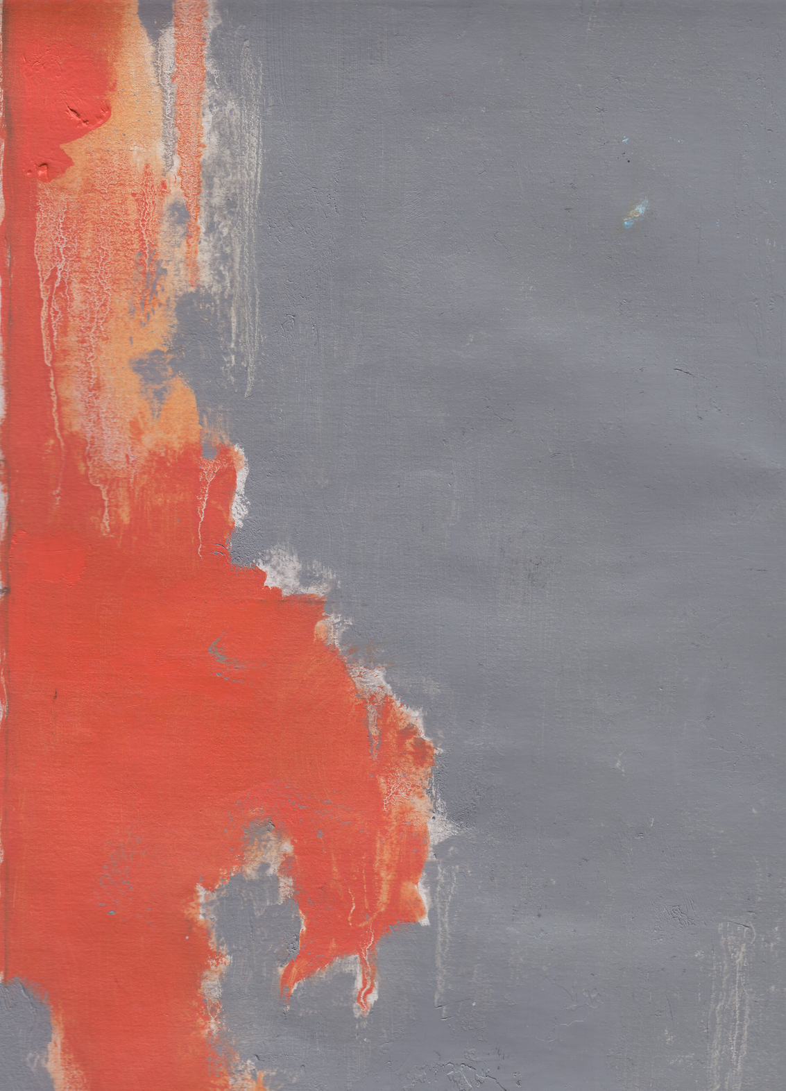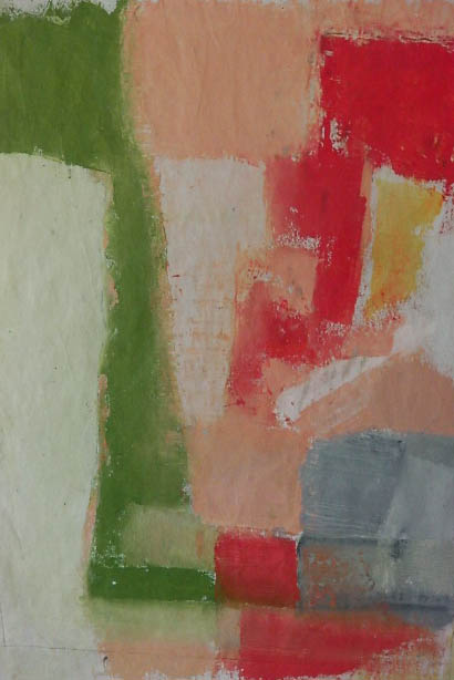 Back in the studio, I singled out a small part of one of the paintings to make a larger painting with brushes, without any underlying drawing again, by paying attention to the areas that were not covered with paint when I was trying the pouring technique. In that stage, the initial object of observation was not relevant anymore. Instead, the emerging inquiry was about the edges of methodically painted surfaces. I noticed there was an almost imperceptible area at the borders of different areas of colour that were neither one colour, nor the other. I wanted to purposefully expose these areas by meticulously smudging the edges of the painted surfaces to make visible that there is a small area around the edges, which remains undecided.