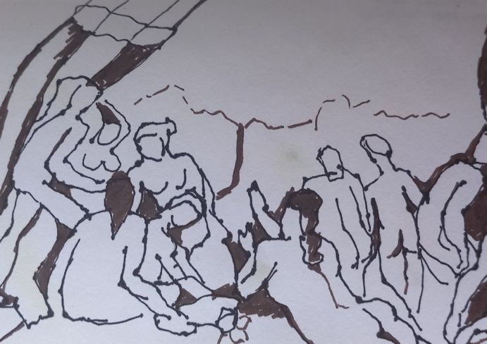 Movement and colour were the starting points for a subsequent dance improvisation video art installation project. Painting offered another reference in Duchamp’s groundbreaking for his contemporaries Nude descending a staircase (1912), where movement is formalised as broken-down elements of the human figure in motion, which takes place in time and space. Duchamp set out to break with the naturalist tradition of painting an object to elevate painting into a plastic art that creates its own plastic art reality: a painting is an object with its own plastic identity, it doesn’t need to depict something (Read, 1974: 126). For this reason, he used brown hues minimally to give a sculptural quality to his painting.