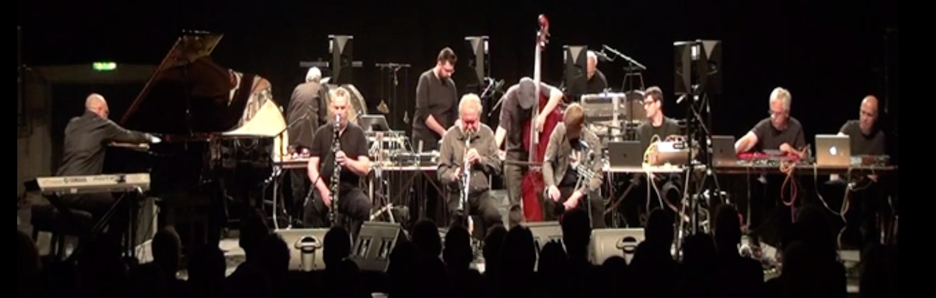 I have worked regularly with this group since 2003, during which time its size and membership has changed many times, as Evan’s concept has evolved alongside the technology used by the electronic performers. Initially the ensemble was conceived in 1990 around his regular trio with Barry Guy (bass) and Paul Lytton (percussion), “accompanied” by three performers of live processing (Lawrence Casserley, Walter Prati and Joel Ryan) applied to one or more of these instruments, and Marco Vecchi taking care of multichannel mixing (and also some other processing) of the entire group. At the Donaueschinger Tage für neue Musik in 2003 Joel Ryan didn’t take part but the rest of the group was augmented by Paul Obermayer and myself as a third element in the ensemble, playing electronic instruments which weren’t concerned with treating the sounds of the acoustic ones. (This performance was released on the CD SET by Psi Records in 2009.) Over the succeeding years this ensemble gradually expanded to reach its maximum size at the Jazz em Agosto festival in Lisbon in 2010, with 18 participants. A 2014 concert at the Huddersfield Festival featured a substantially new lineup, whose latest variation performed at the same festival in 2019, with the following musicians: