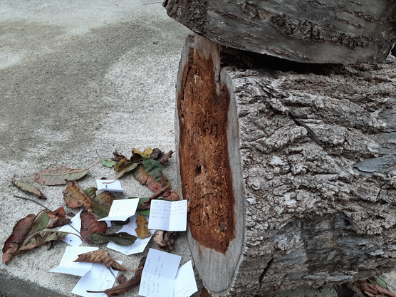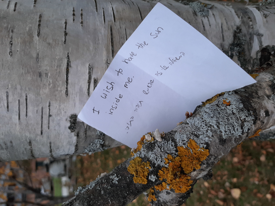 ‘With the power of a strong wind I wish that my leaves, understood as negative thoughts and experiences that I carry, could get removed making them fall’ (The last wish, the HumanTree, 2019).