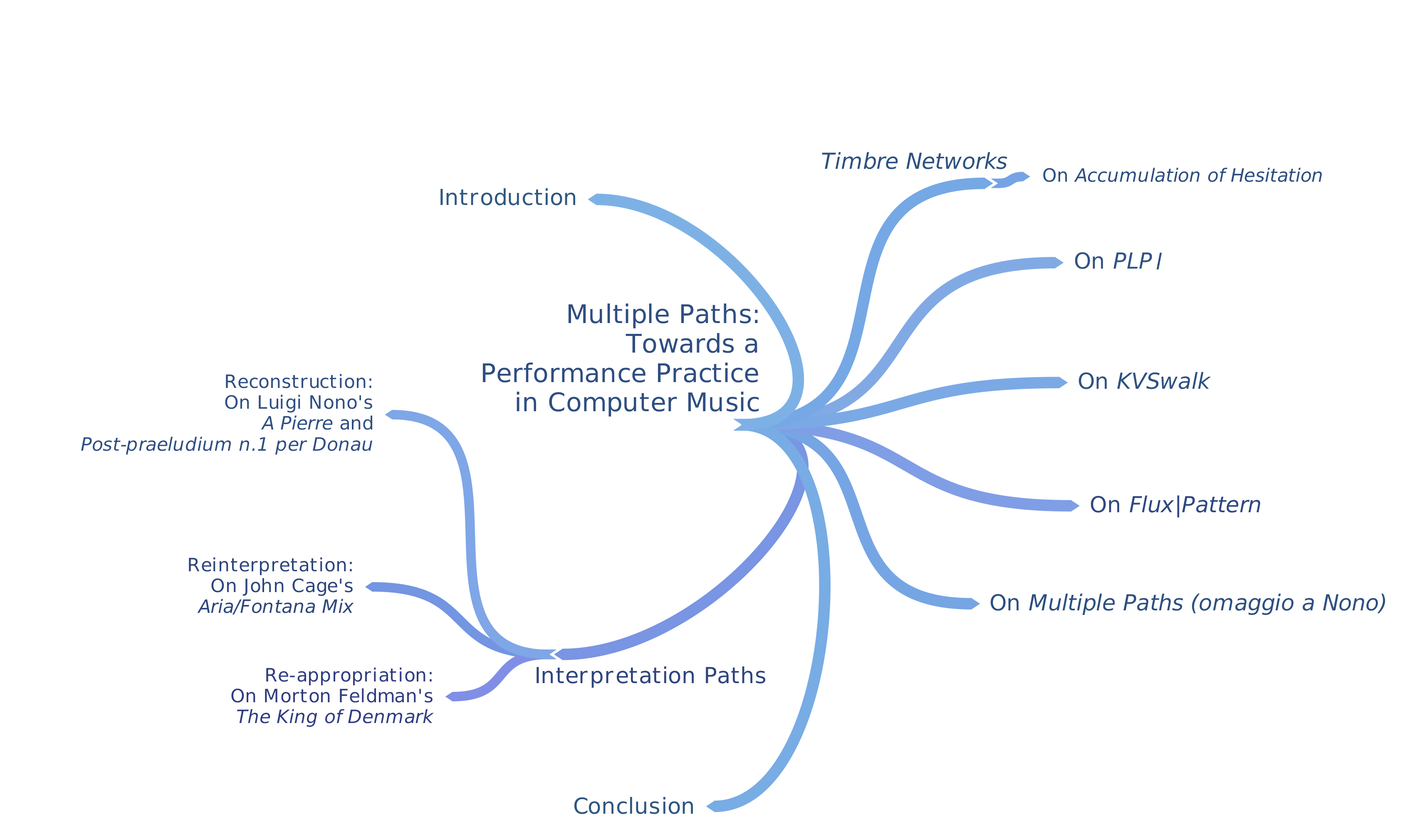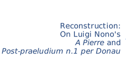 - Luigi Nono’s A Pierre. Dell'azzurro silenzio, inquietum and Post-prae-ludium nr. 1 per Donau, dealing with interpretation as reconstruction, starting from the skill set of the computer music performer as technician/instrument builder.