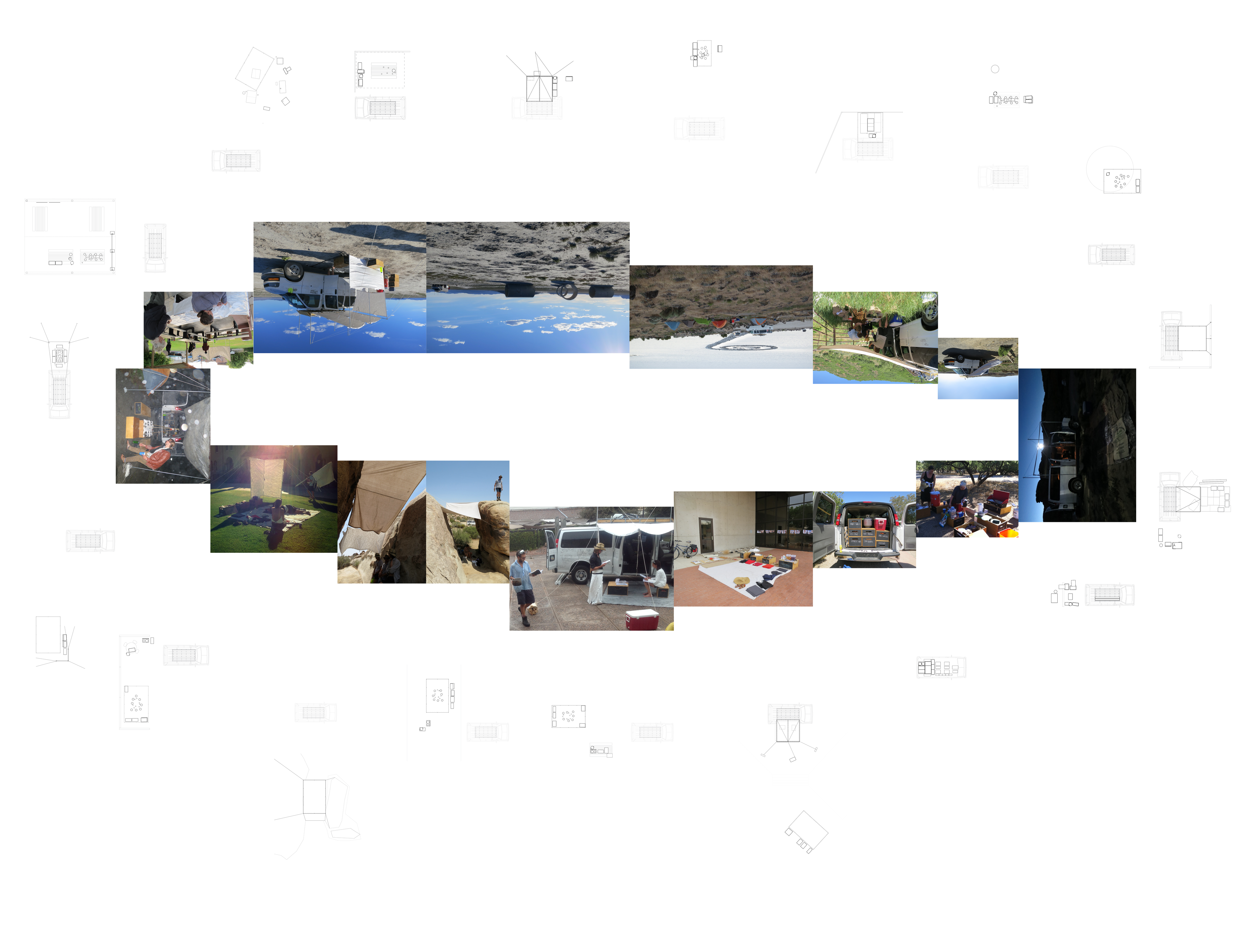 This exposition investigates practice-as-research dynamics through a project titled ‘Shuttle’, from which emerged a practice of ‘shuttling’ as a layered modality for processing methodological artistic research. An international crew of artists, designers, and performance makers enquire into peer-to-peer creative practice development: practices unfolding through the dramaturgy of a twenty-day, four-thousand-mile mobile performance-research journey in the deserts of the North American south-west. We trace the dynamics of a practice-as-research milieu through a suite of artistic operations, performatively elaborated through this rich-media exposition. Through ‘shuttling’, we generate parafunctional performative spaces and temporalities. Our spatio-temporal and sensory mode of research – conditioned, co-created, and situated as a mobile laboratory – posits reflexivity as an embodied practice, as a medium of ‘shuttling’ with the dynamic emergence of creative research practices.