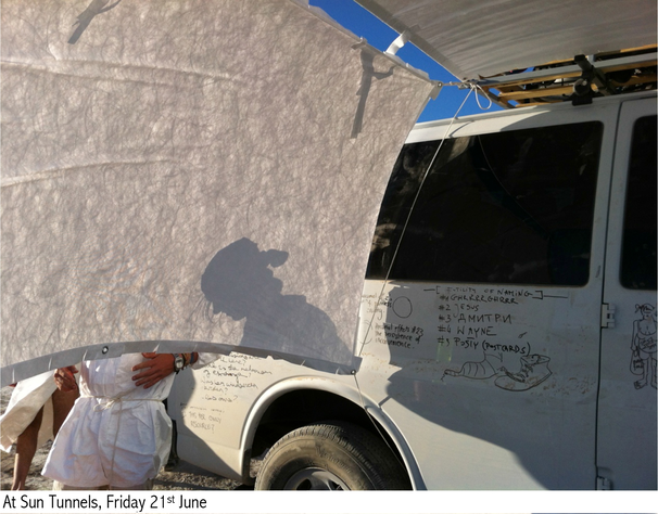 Shuttling being alone and being embodied, enmeshed, entangled, and so alive; shuttling dirt road corrugations and interpersonal relations over a four-thousand-mile journey; shuttling the operations of ten artists tracing out an accumulating experimental creative-practice-as-research milieu.