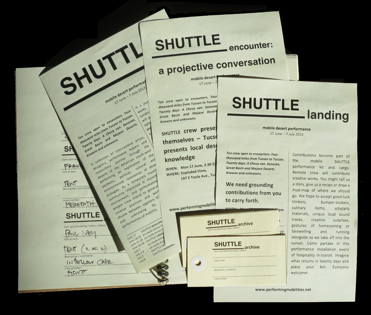 Dorf, Alison, ‘A Work in Progress: SHUTTLE’, City Week: Pick of the Week, Tucson Weekly, 27 June 2013 <http://www.tucsonweekly.com/tucson/a-work-in-progress/Content?oid=3823421> [accessed 31 October 2015]