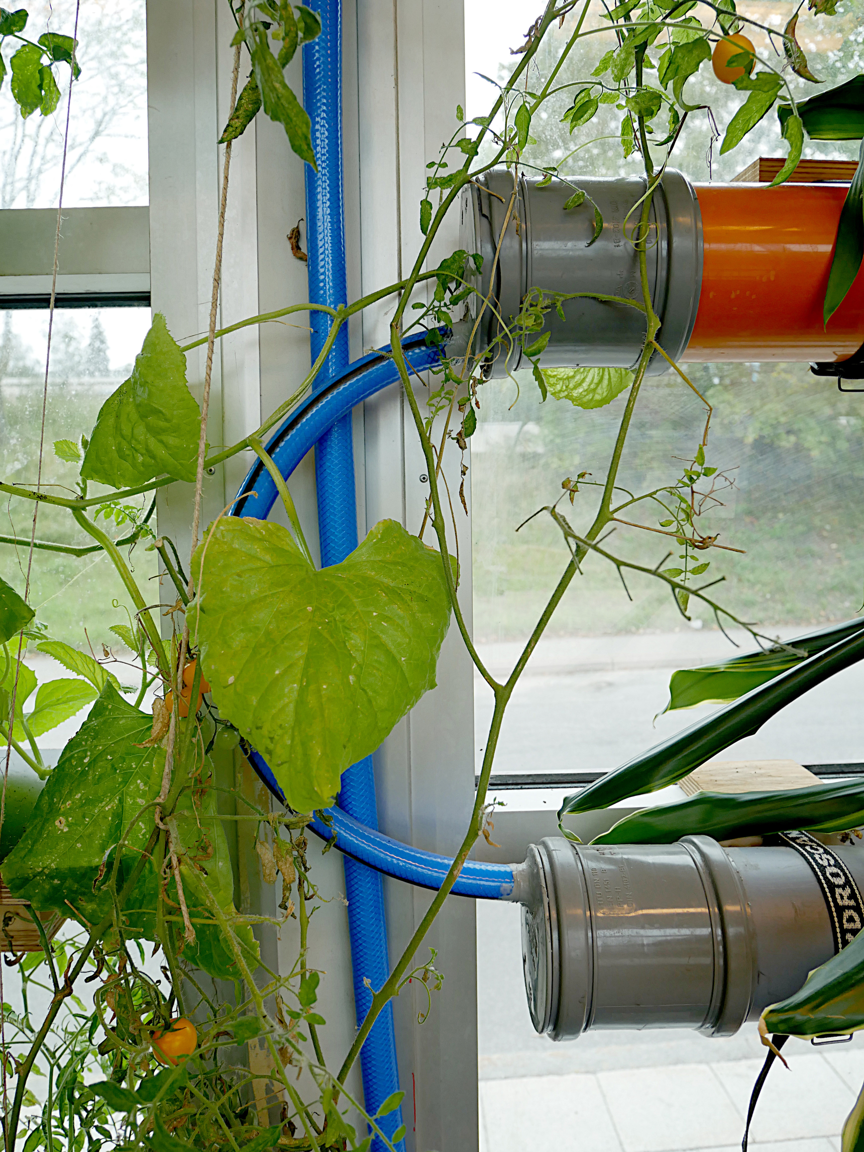 Hydroponics system built of construction sites materials, cuttings, memories.