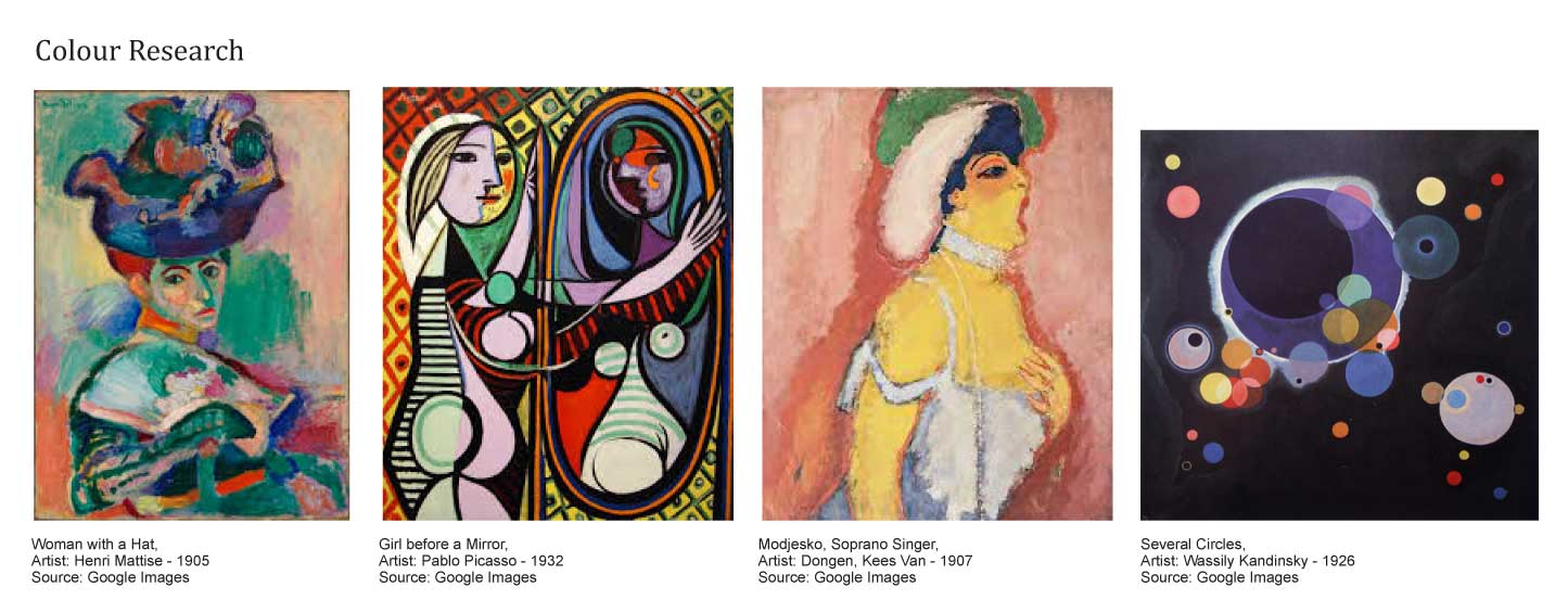 We can see the use of colours by artists to convey a spiritual feel in these examples. Interestingly, the colours do not resemble with the skin tone, hat, background, or the cosmos, of the above paintings, however, these invented colours call for an action and reflection. I think these colours demonstrate the ability of an artist to cut off from the material world and present an unseen spiritual dimension, where colours are more vibrant and soulful. Artist teachers engaged in teaching spirituality in art classes can use these examples and develop new ones based on the principles of 'inner necessity.'